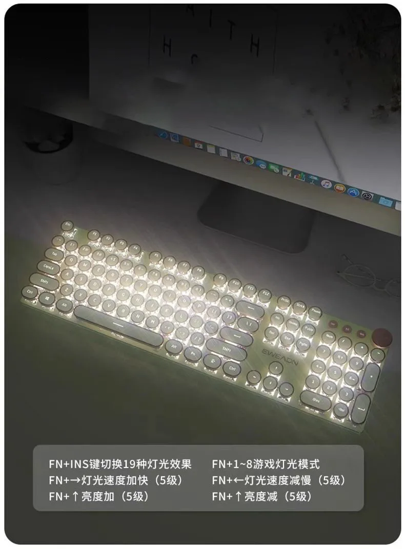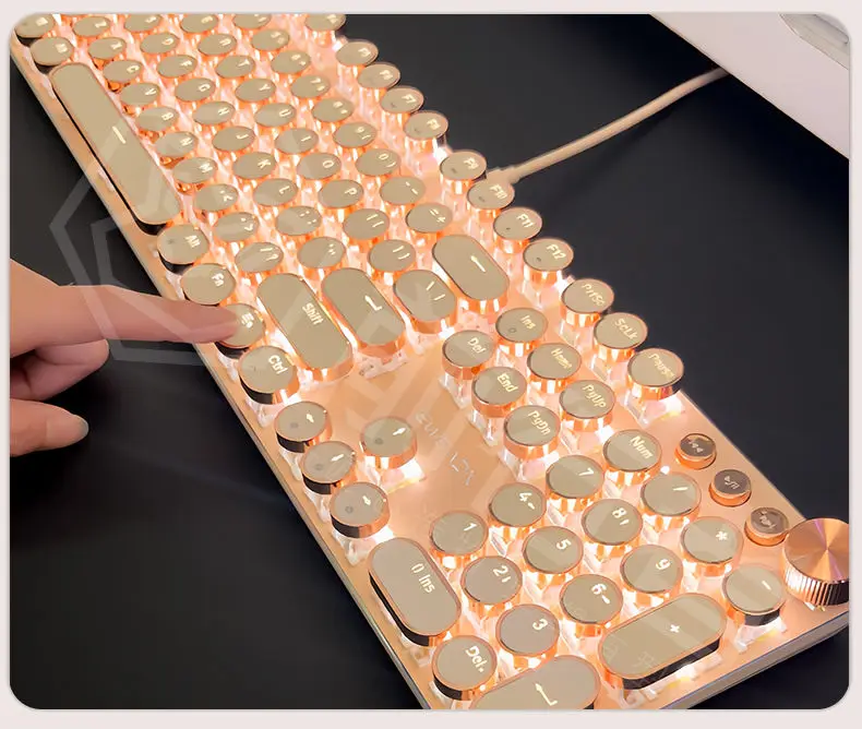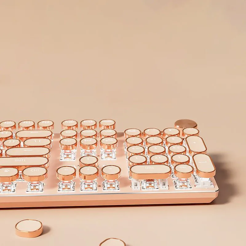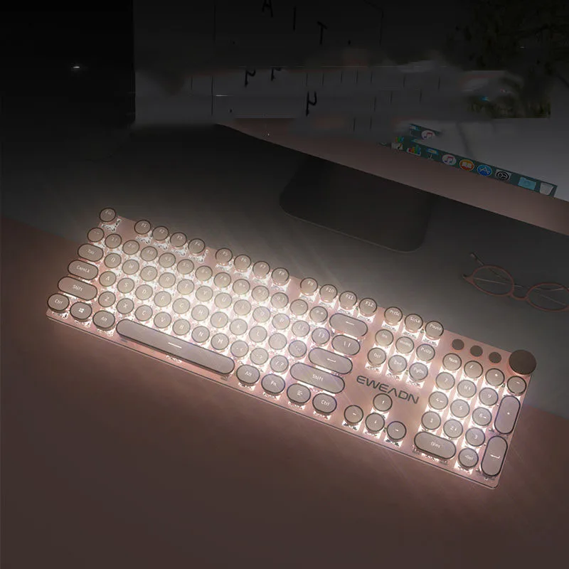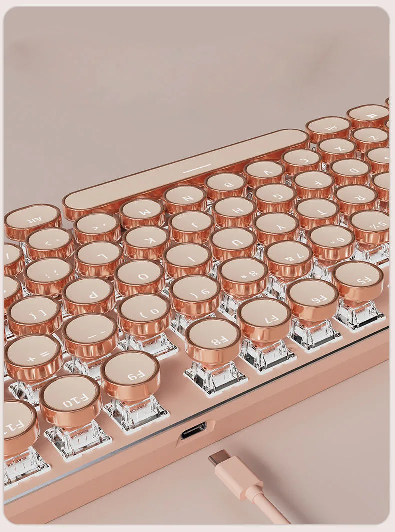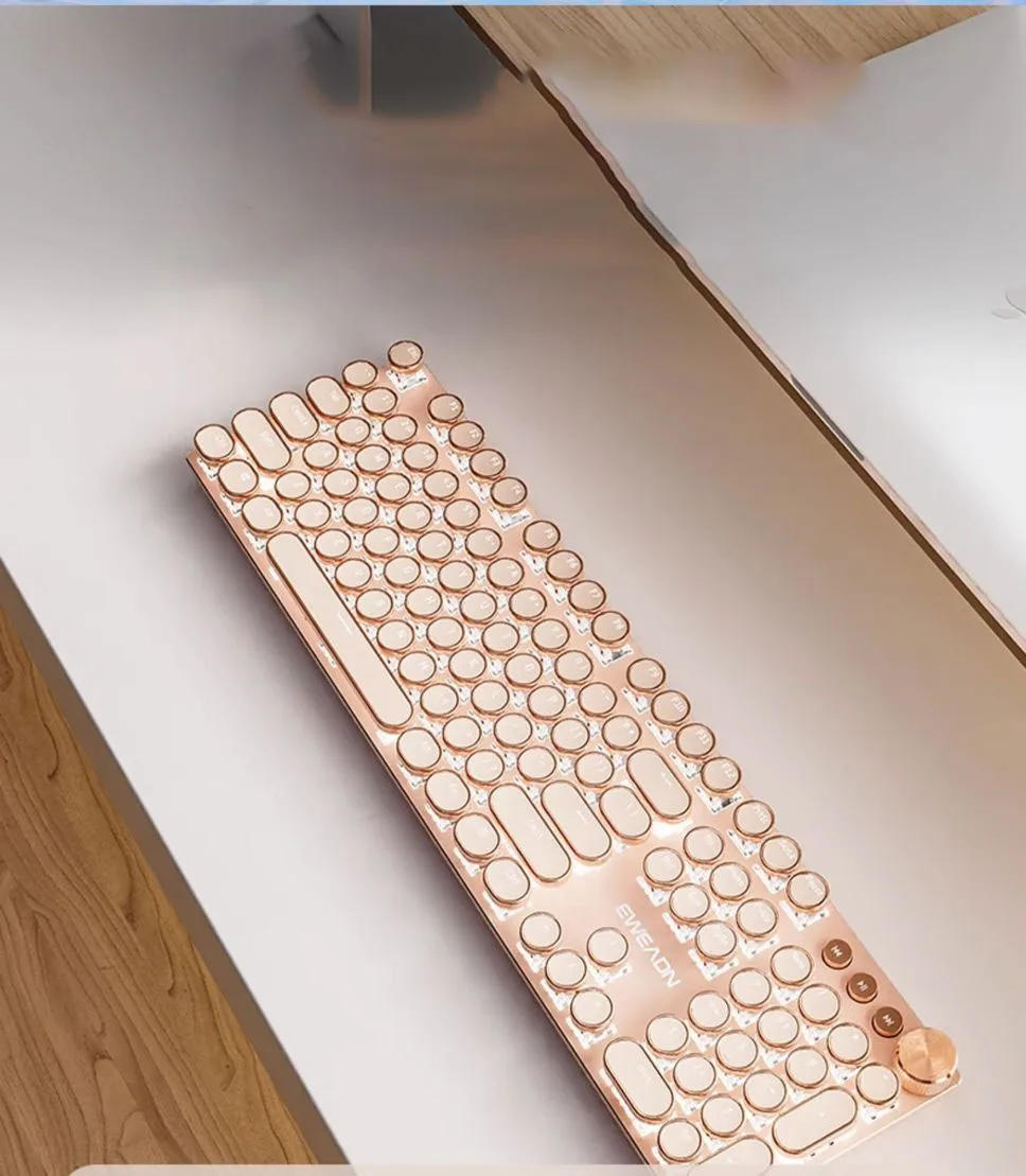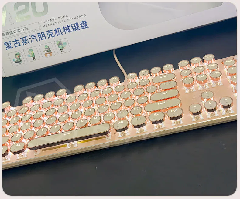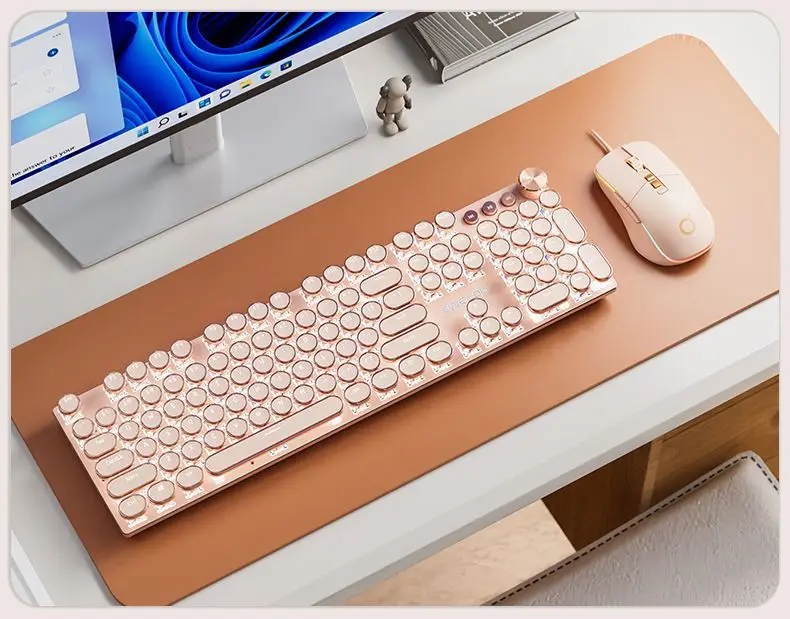 104 Keys Vintage Punk Mechanical Keyboard Female Office Game Computer Mouse Set Colorful Backilight Type C Wired Pink