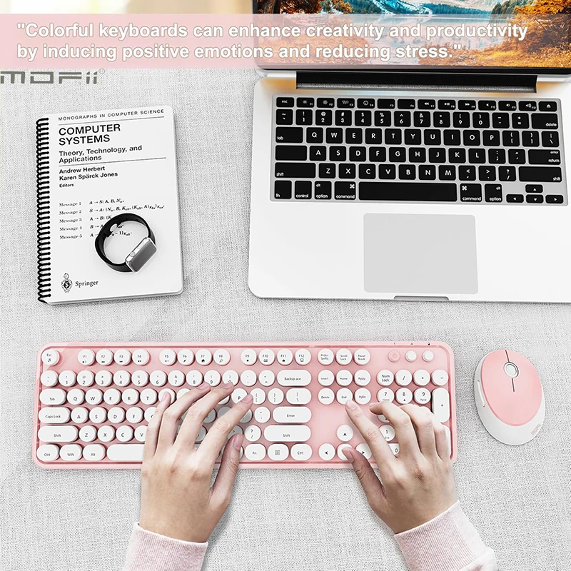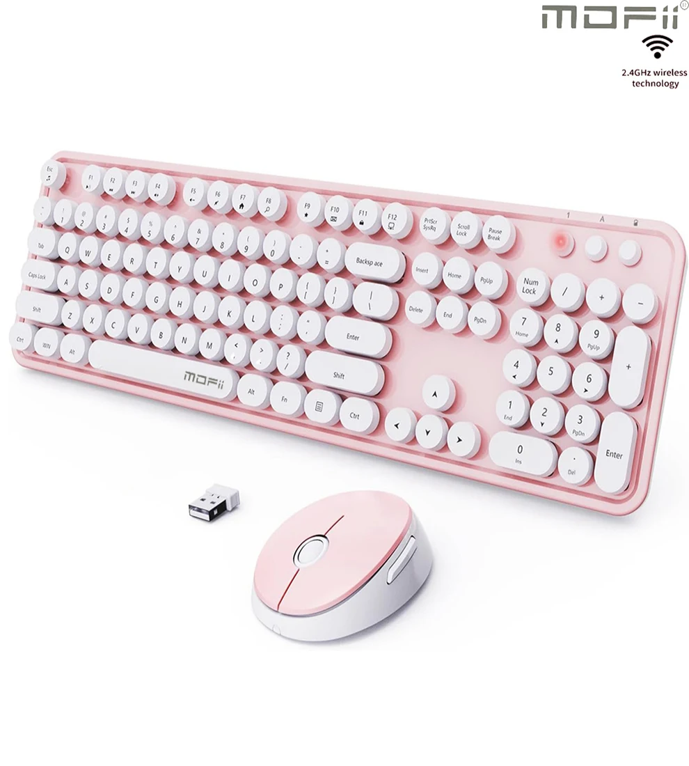 Ergonomic 104 Keys Full Size Round Retro Keycaps Wireless Keyboard and Mouse Set 2.4G Wireless Keyboard Mouse Combo for Desktop