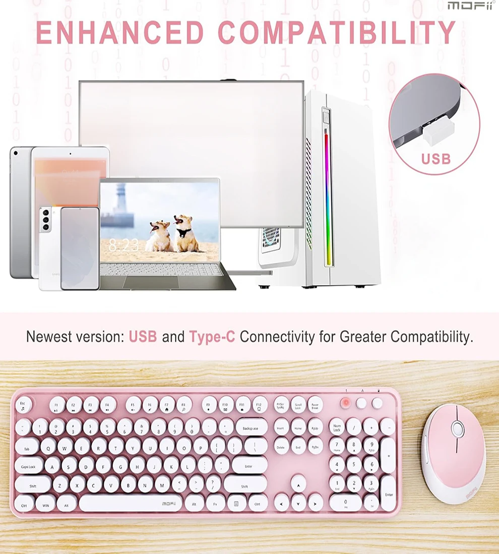 Wide Compatibility: Wireless keyboard and mouse set compatible with Windows 98/Me/2000/XP/Vista/7/8/10/11 or latest. Work with Computer, Laptop, PC, Desktop, Chromebook, Notebook, Smart TV. This exquisite keyboard and mouse will be a good partner of your office desktop, adding more atmosphere and visual beauty to your workspace.