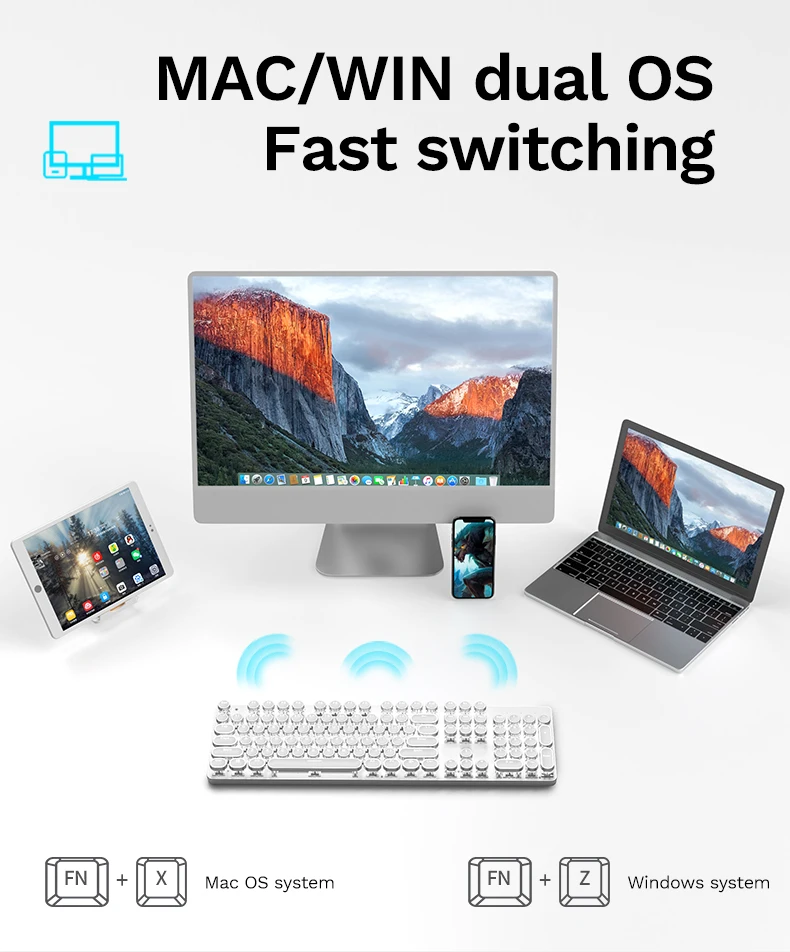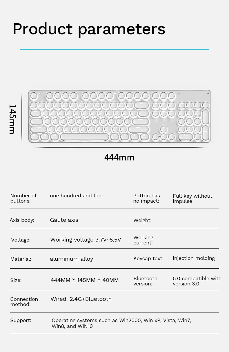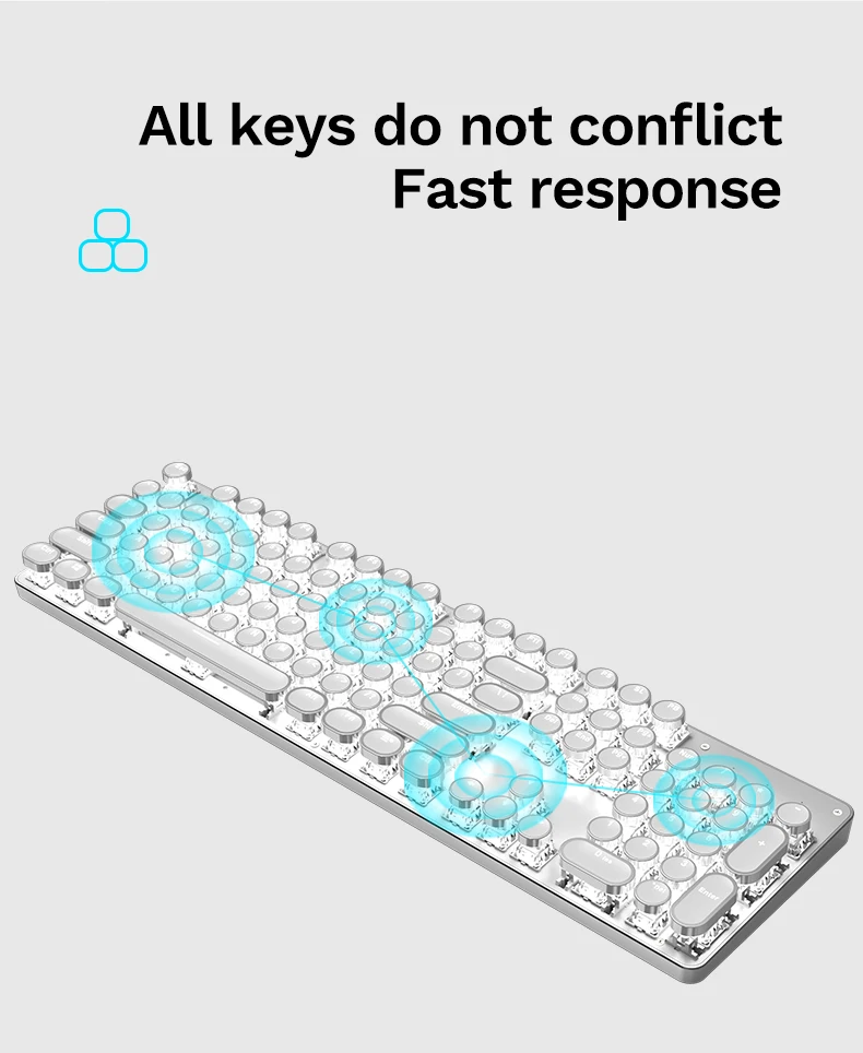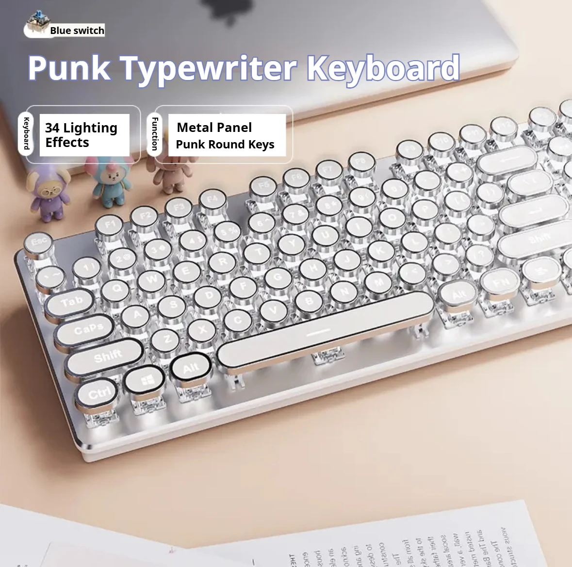 EWEADN TK950 Wireless Punk Typewriter Mechanical Keyboard, Game Office Triple Mode Wireless 5.0/2.4G/Wired, Ergonomic Keyboard