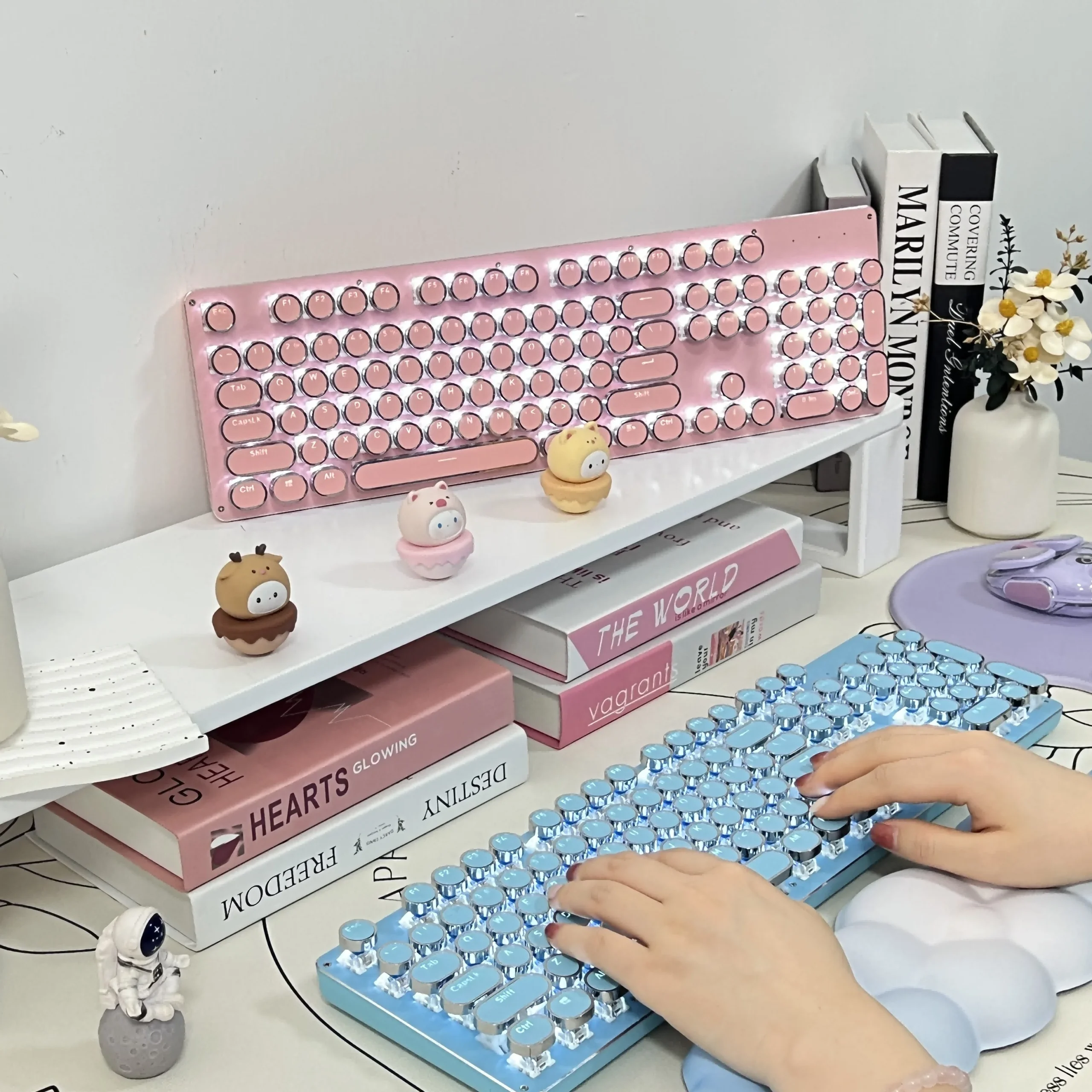 104 Keys Vintage Punk Mechanical Keyboard Female Office Game Computer Mouse Set Colorful Backilight Type C Wired Pink