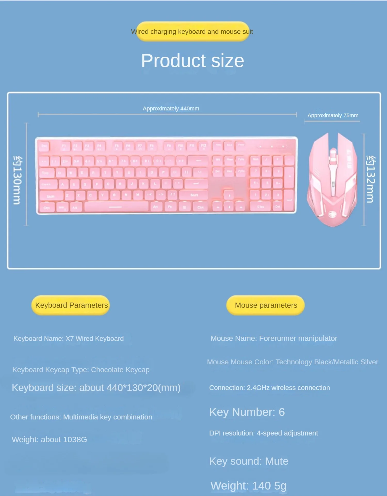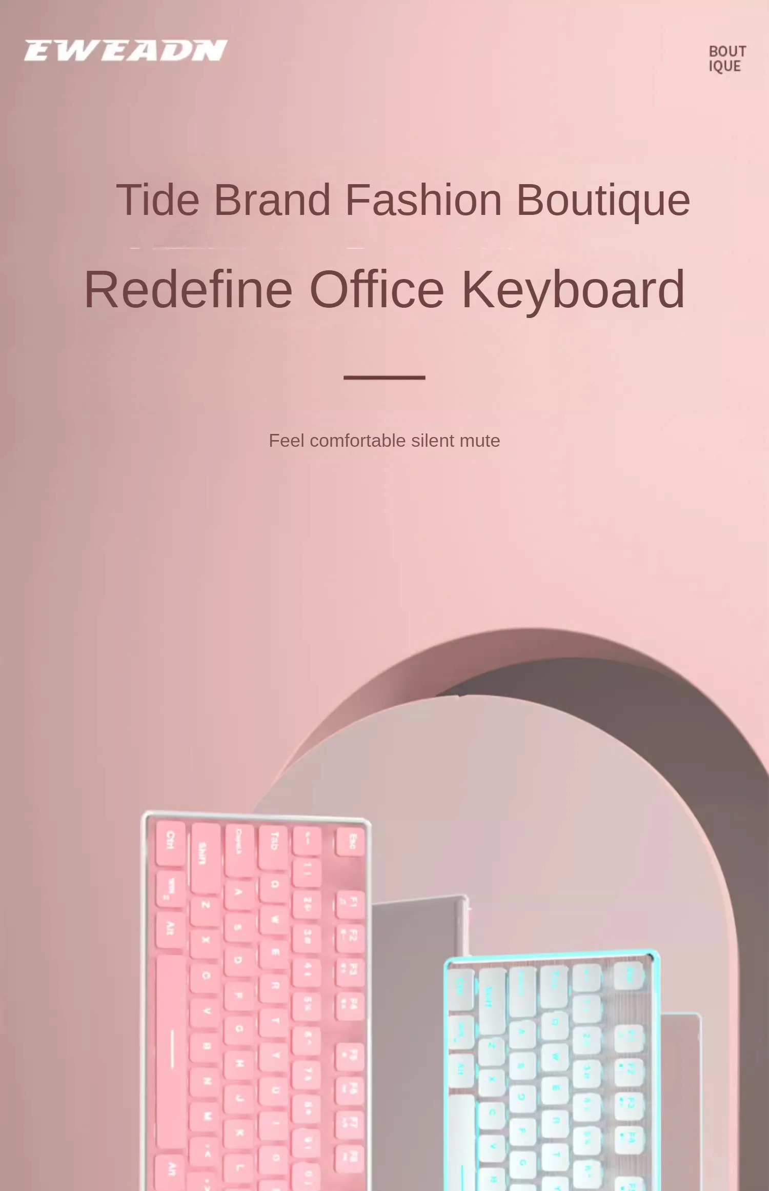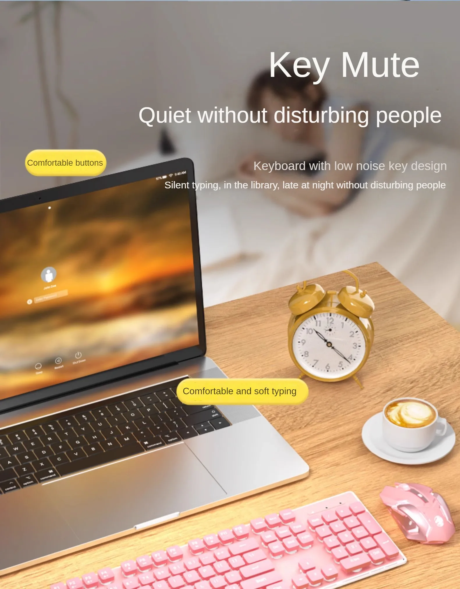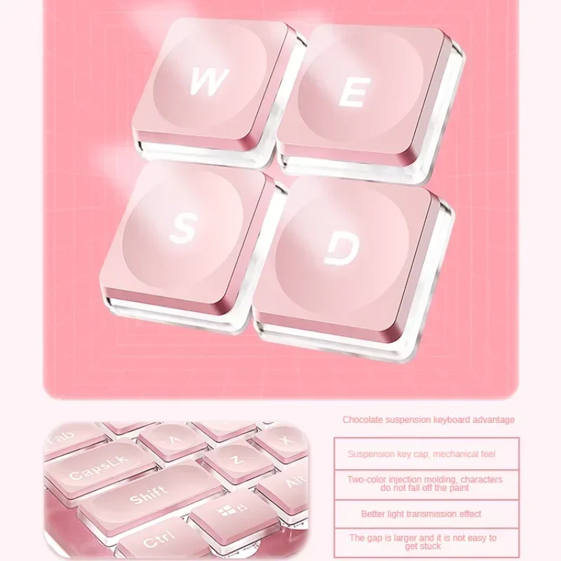 EWEADN Wired Keyboard Silent Office Pink Keyboard Mouse Set Key Silent Ergonomics 26 Key No Rush PC Laptop Accessories Girl Gift