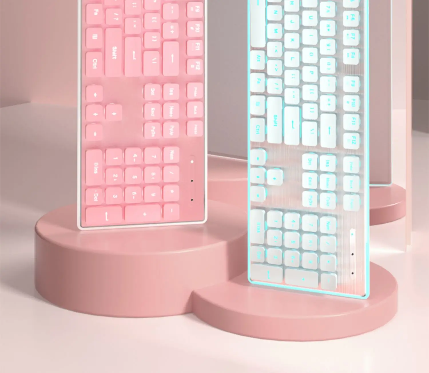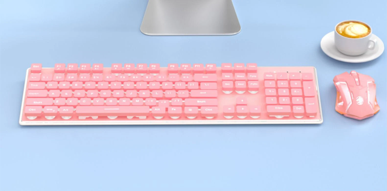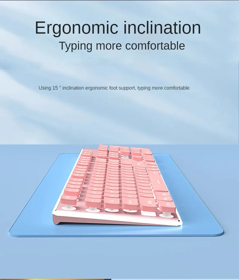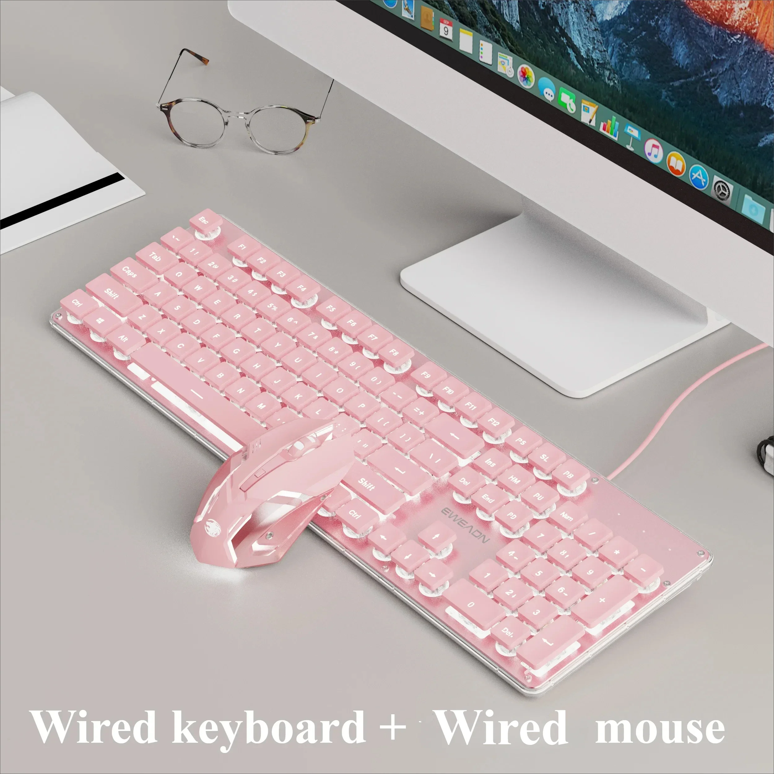 104 Keys Vintage Punk Mechanical Keyboard Female Office Game Computer Mouse Set Colorful Backilight Type C Wired Pink