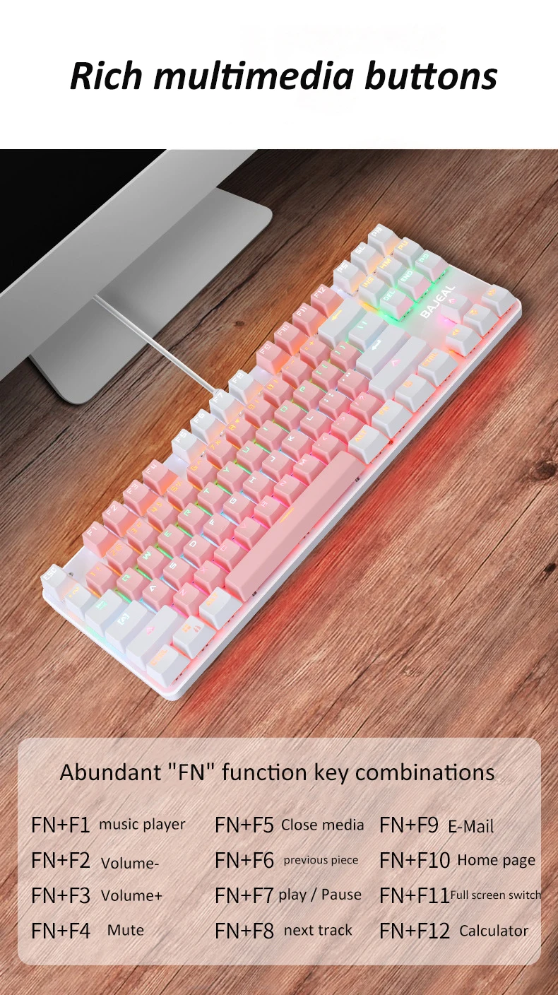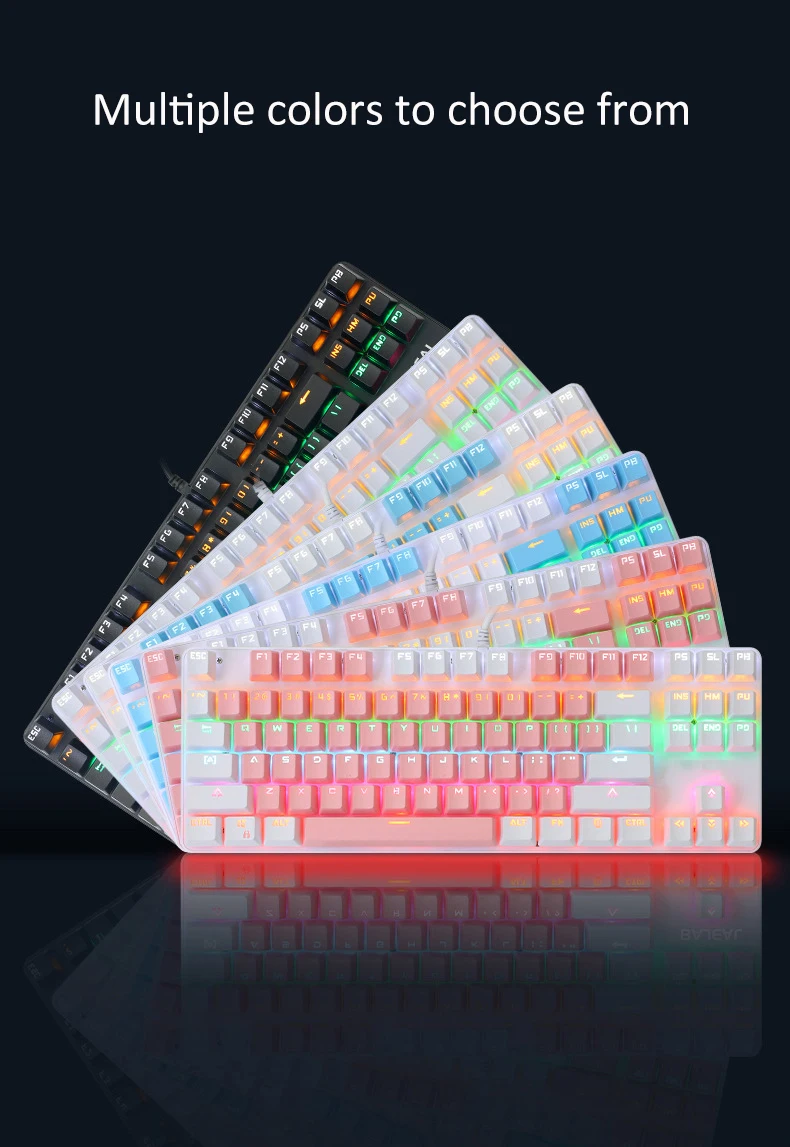KLW Gaming Mechanical Keyboard 87 keys Game Anti-ghosting Blue Switch Color with Backlight Wired Keyboard For ProGamer Laptop PC