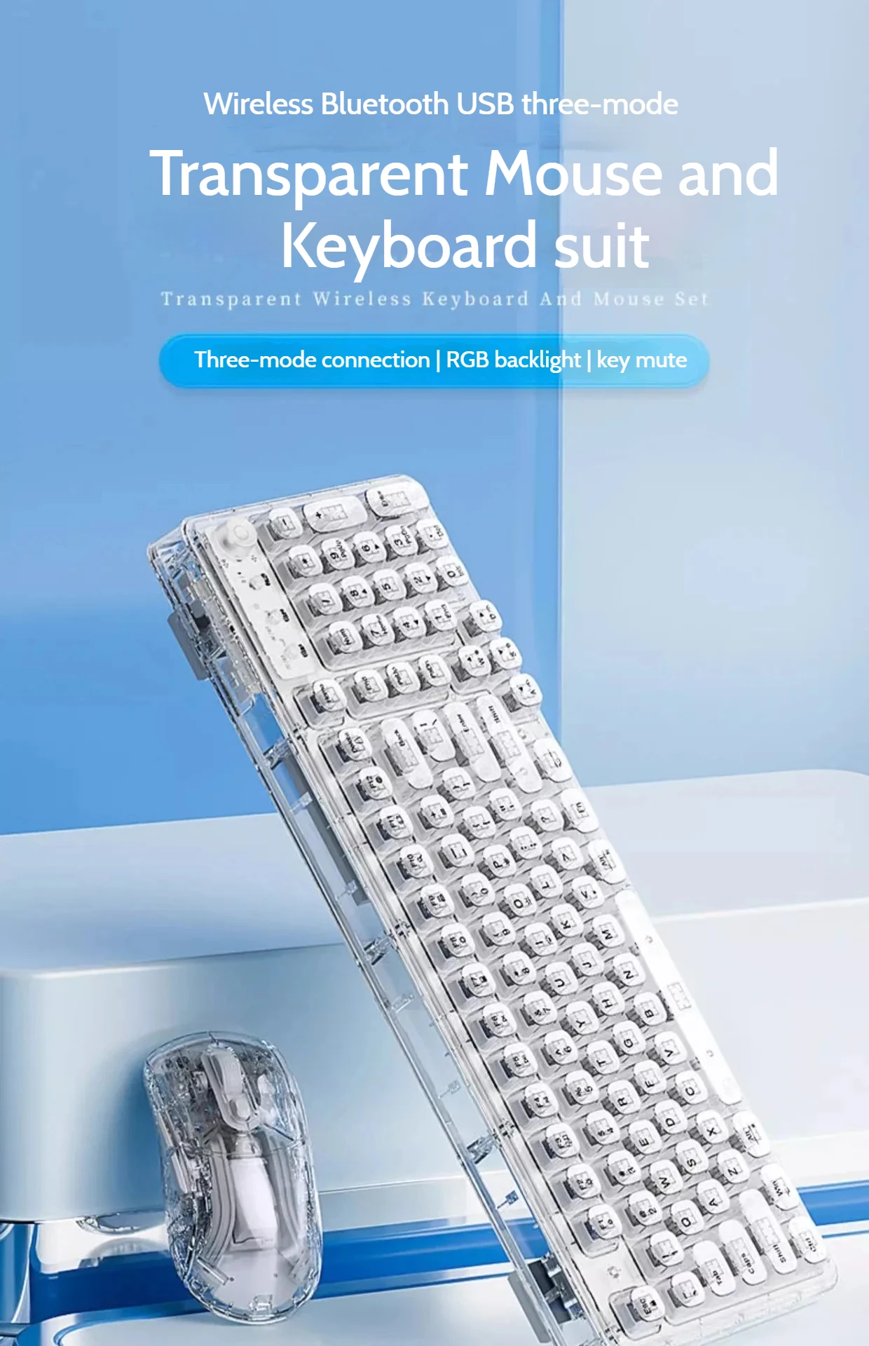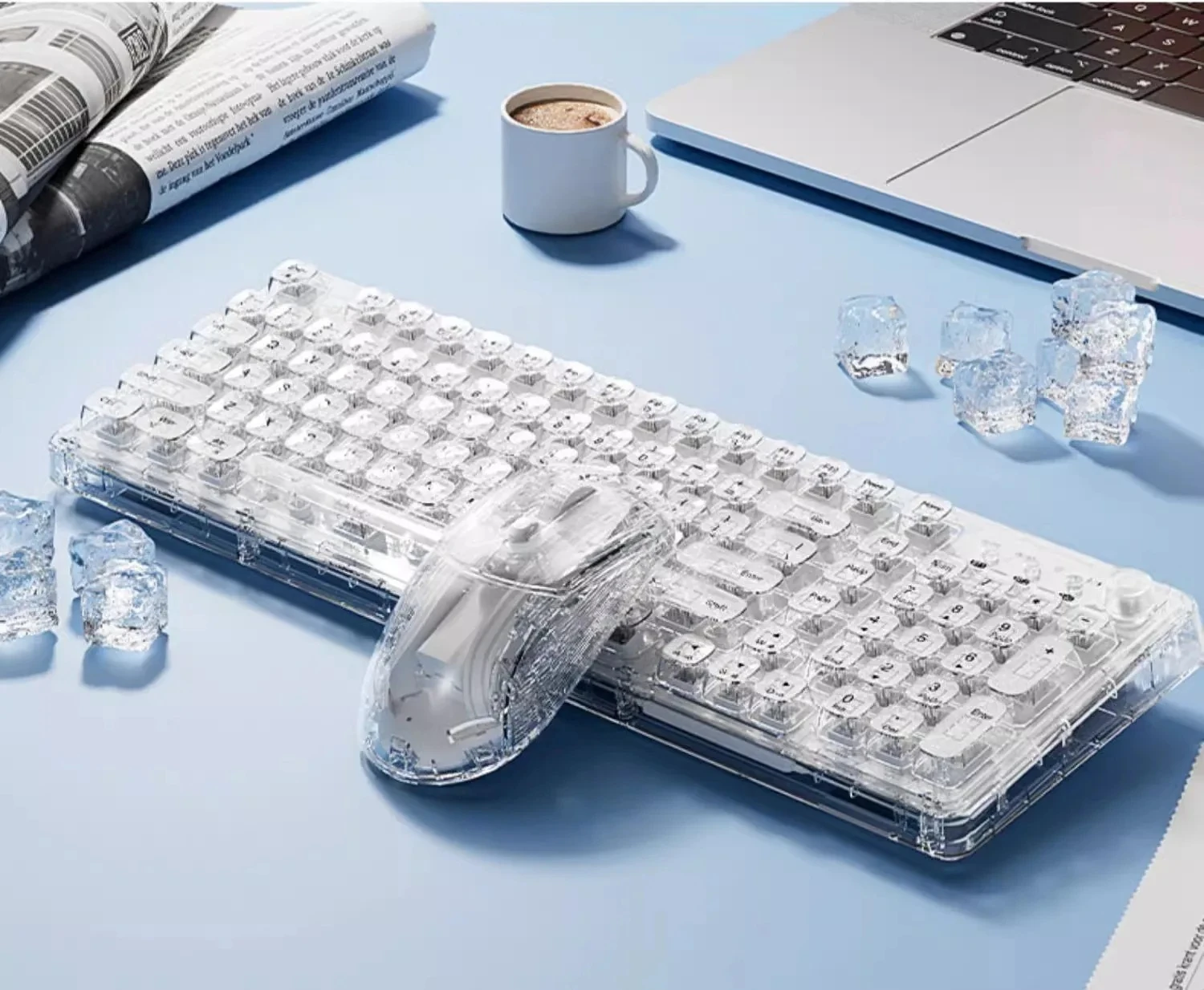 Leilin Z99 Ice Transparent Wireless Bluetooth Crystal Keyboard and Mouse Set Mechanical Computer Female Office Silent Gift