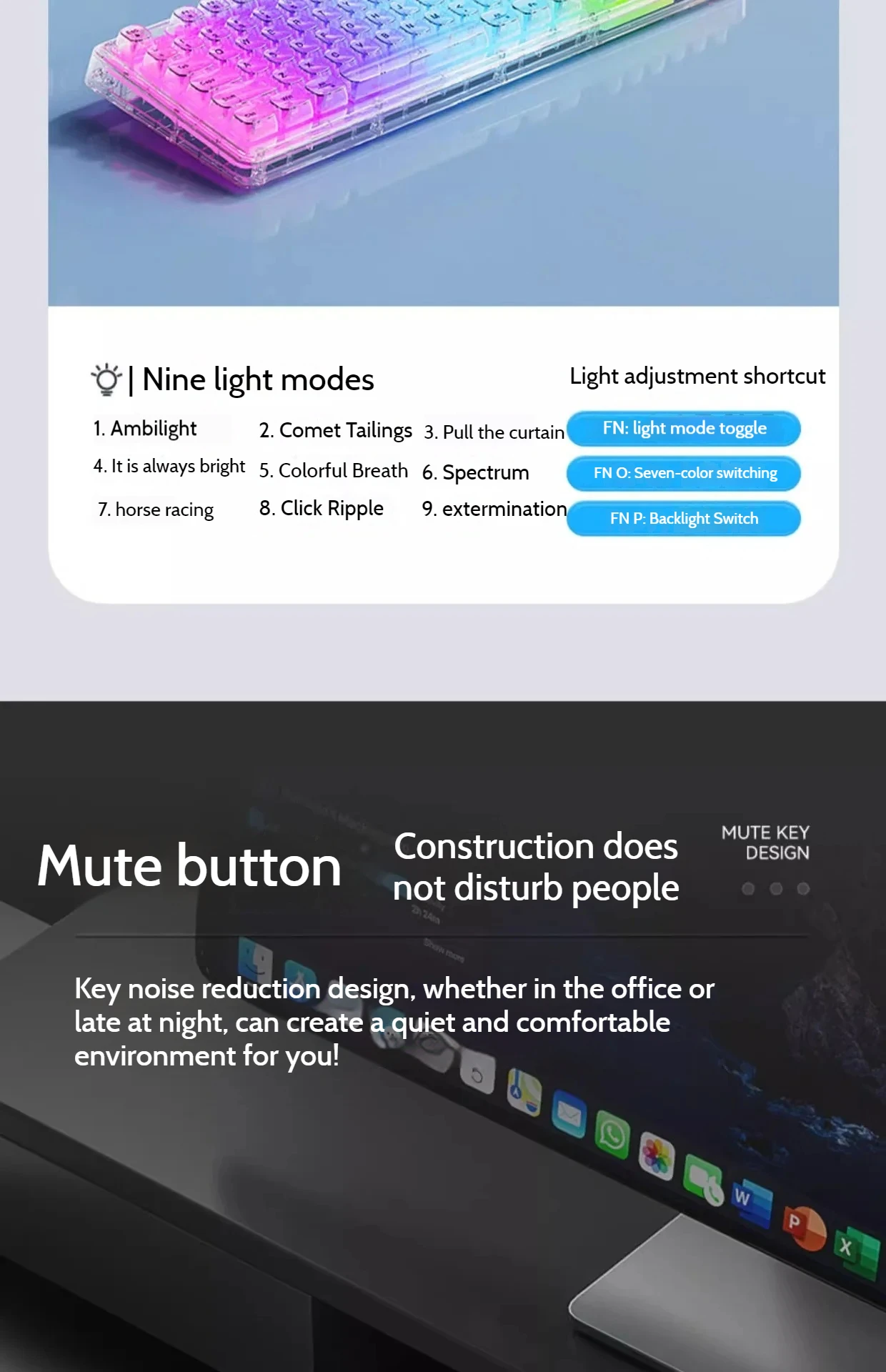 Color | Key mouse Tri Mode B, keyboard Tri Mode A, Key mouse Tri Mode A, keyboard Tri Mode B |