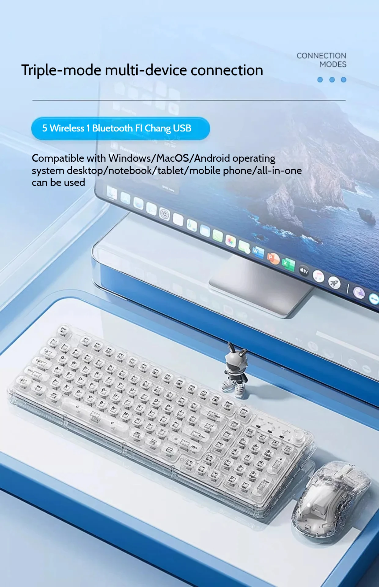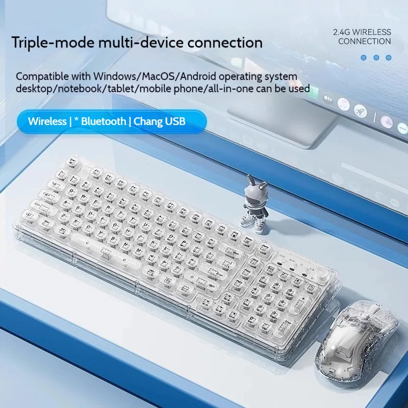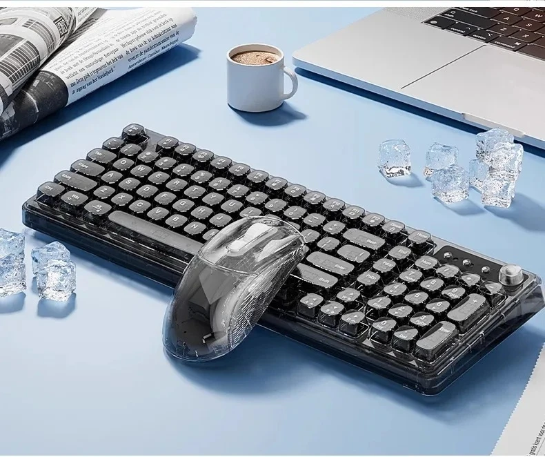 Leilin Z99 Ice Transparent Wireless Bluetooth Crystal Keyboard and Mouse Set Mechanical Computer Female Office Silent Gift