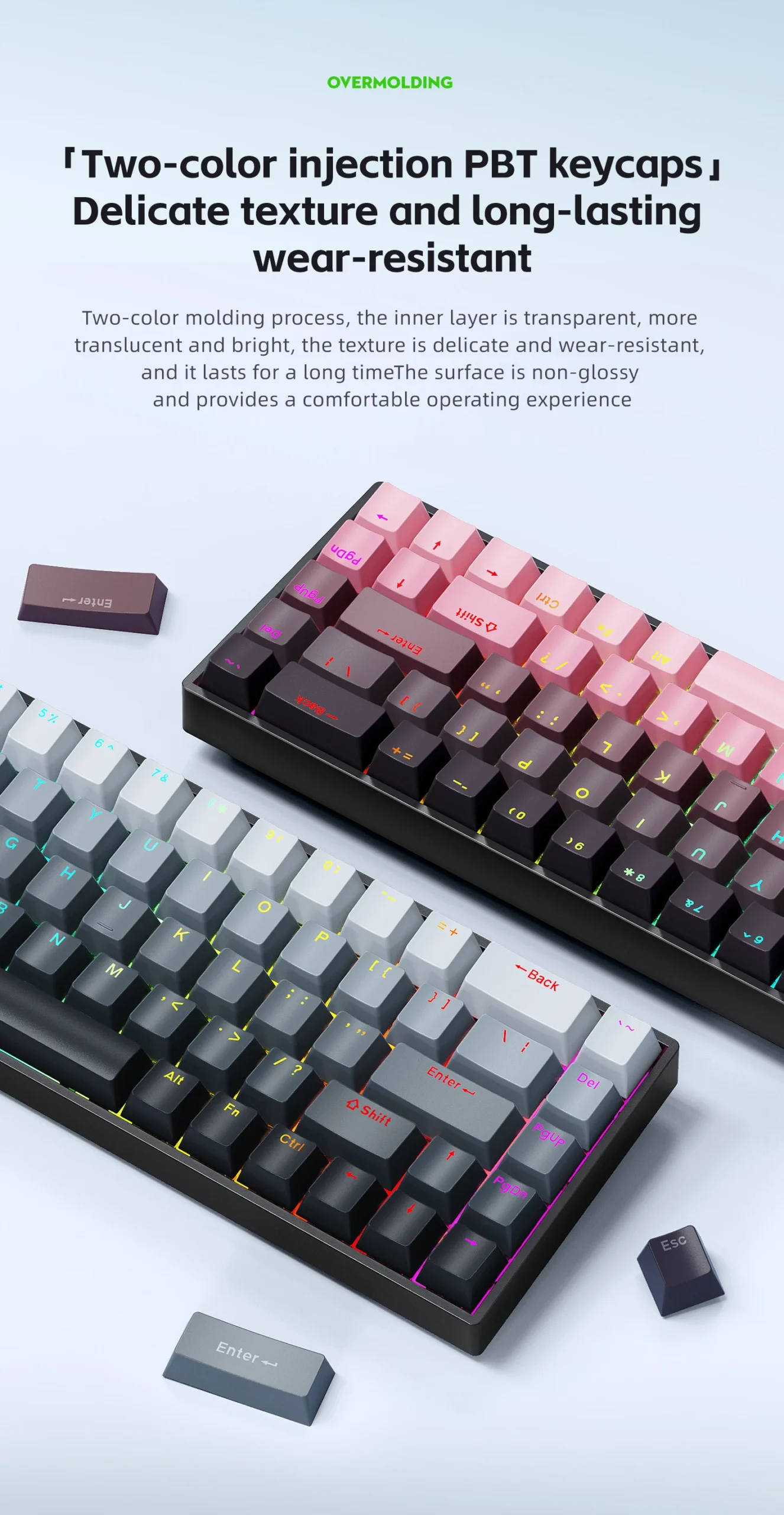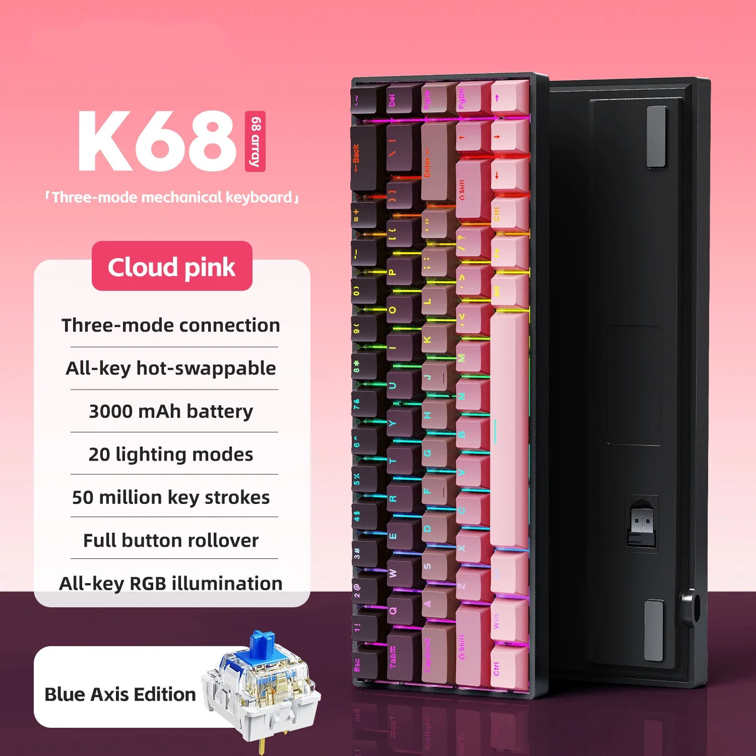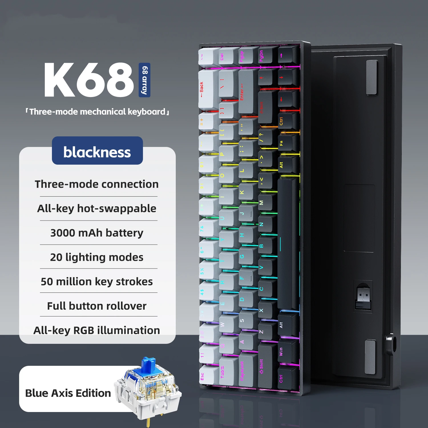 Mechanical Keyboard Tri-Mode Connection 2.4G/Wired/Bluetooth Keyboard 68 Keys RGB Backlit Gaming Keyboard 2.4G Wireless Keyboard