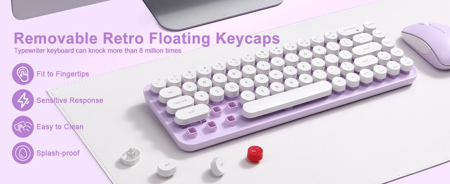 The keycaps are easily removable, allowing you to use a brush to thoroughly clean the dust and dirt that accumulates in the crevices during daily use, keeping the keyboard clean and tidy at all times. The independent round keys are scientifically laid out so that your fingers can be quickly and accurately positioned on the keys, and the keys are responsive, bringing you a smooth typing experience.