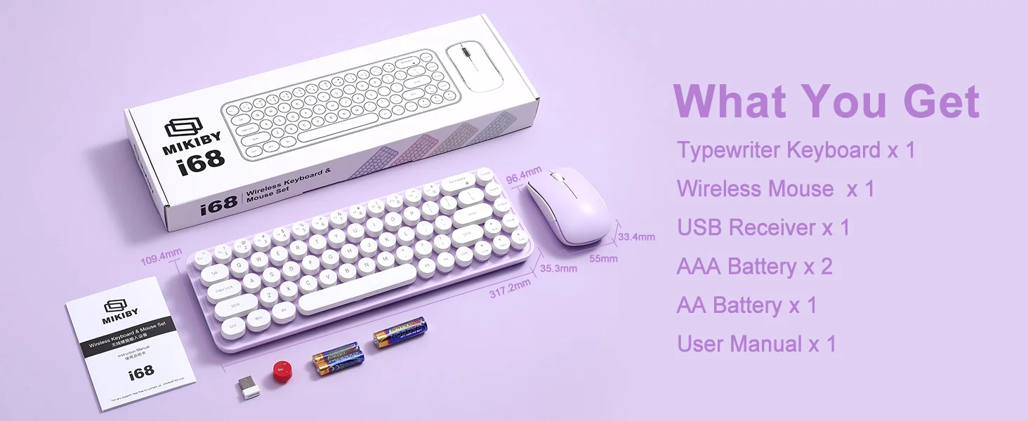 MIKIBY i68 Purple Wireless Keyboard and Mouse Combo, Easy to Carry, Lightweight Keyboard&Mouse, Round Keycaps, Membrane Keyboard