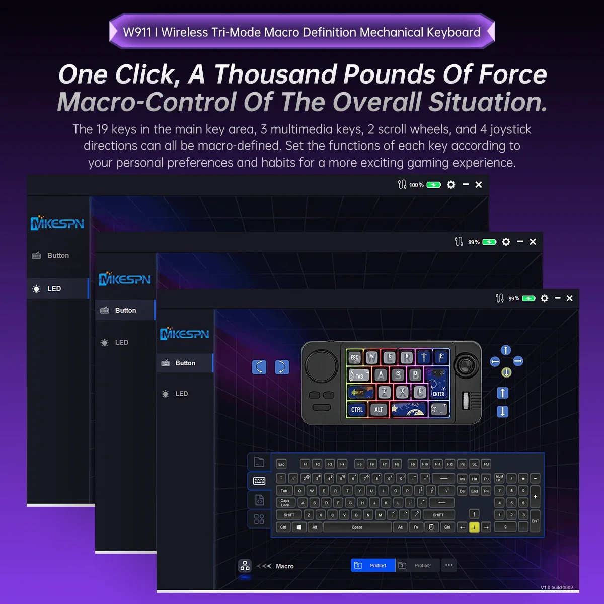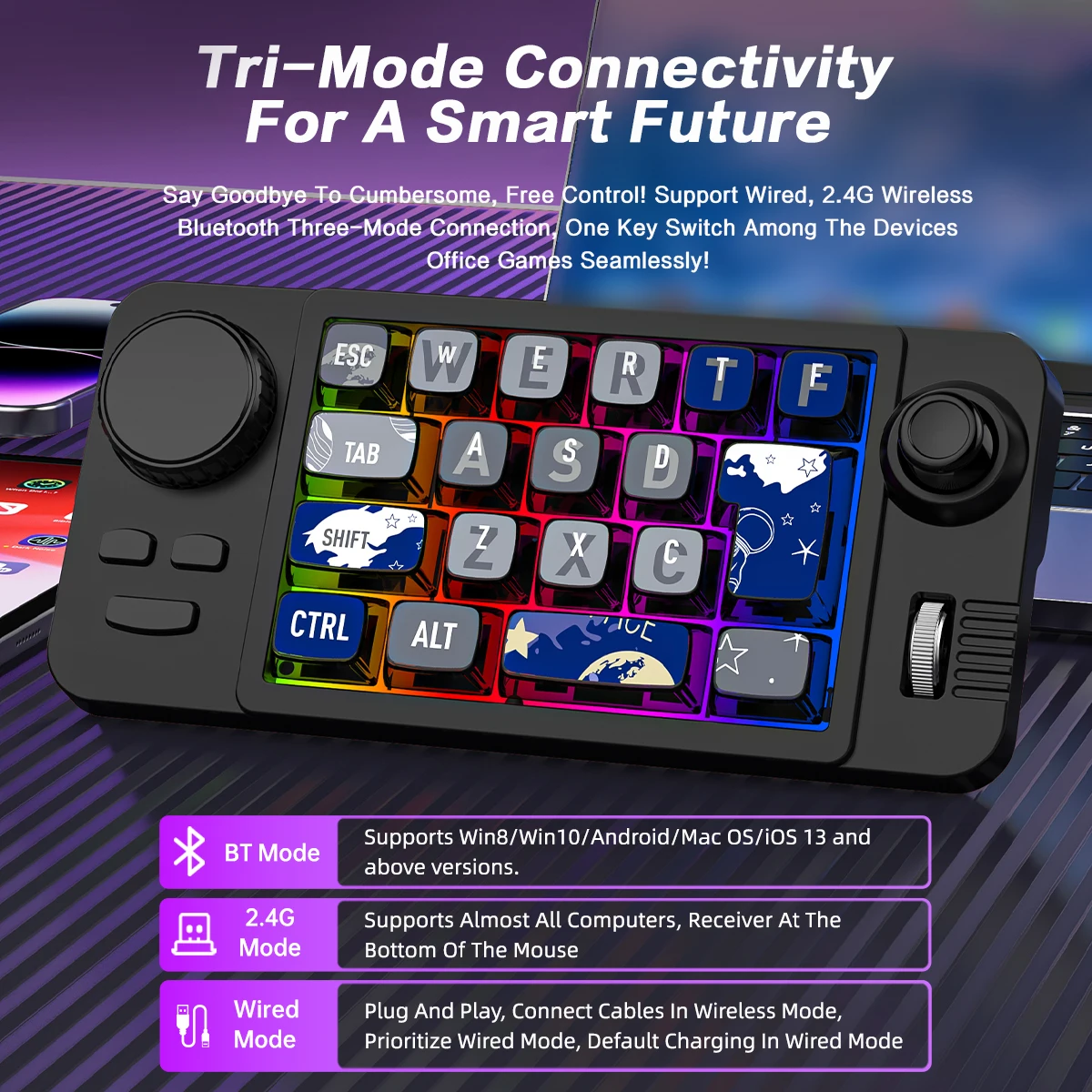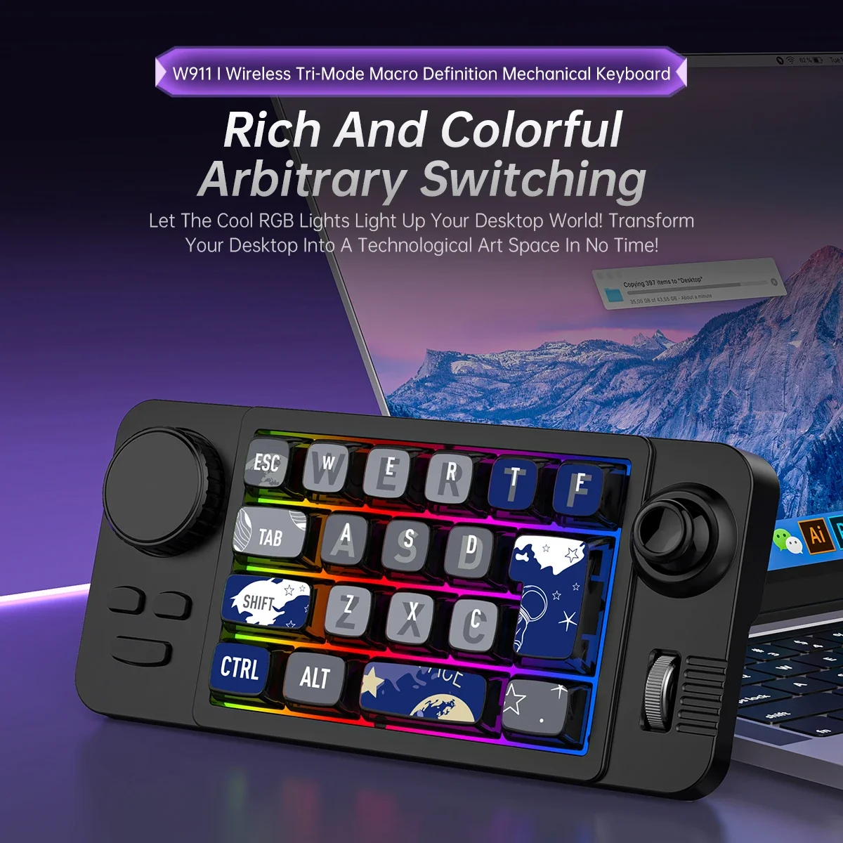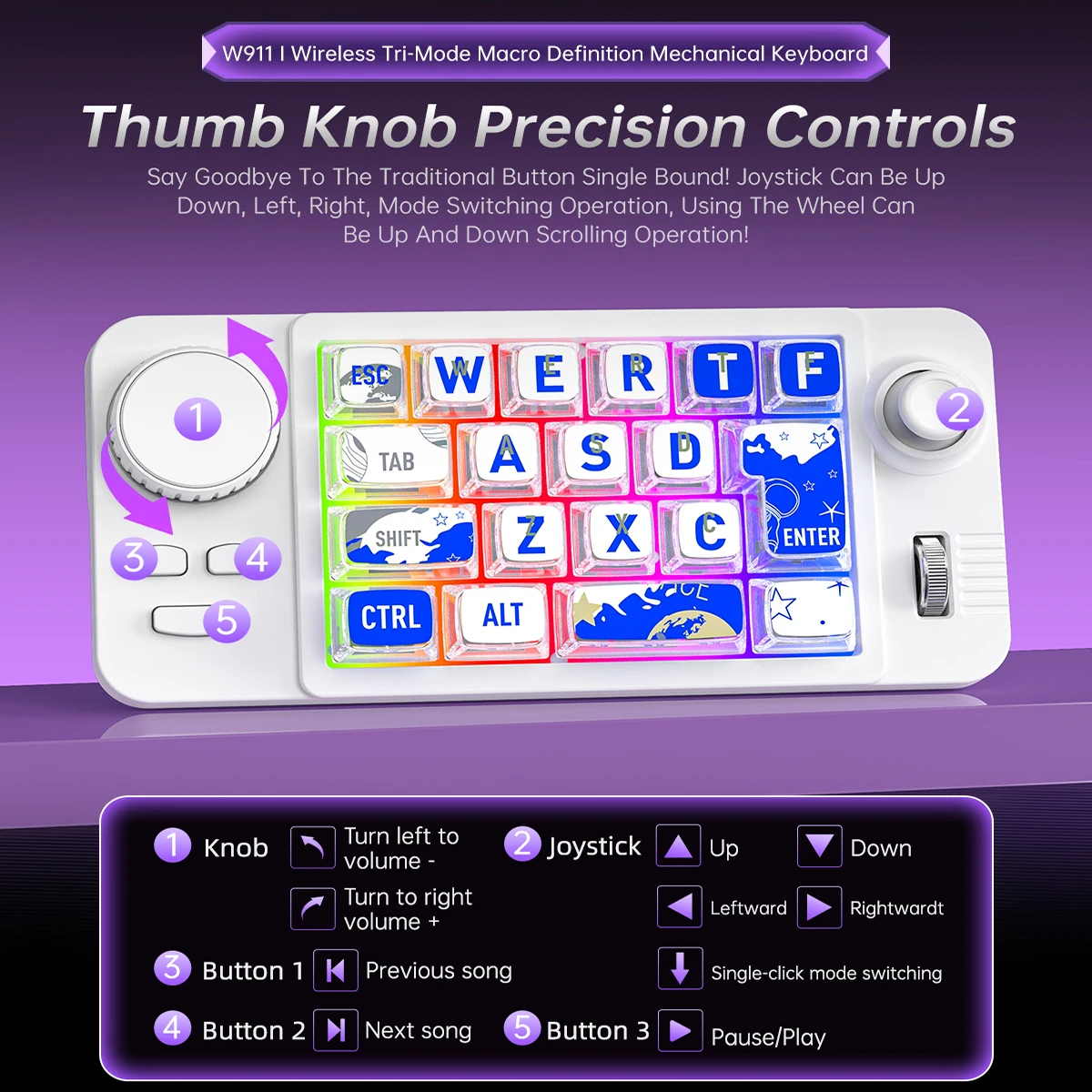 MKESPN W911 Mechanical Keyboard Tri Mode 22Keys with Game Joystick Full Hot Swappable Porgrammable with Volume Scroll PC Gifts