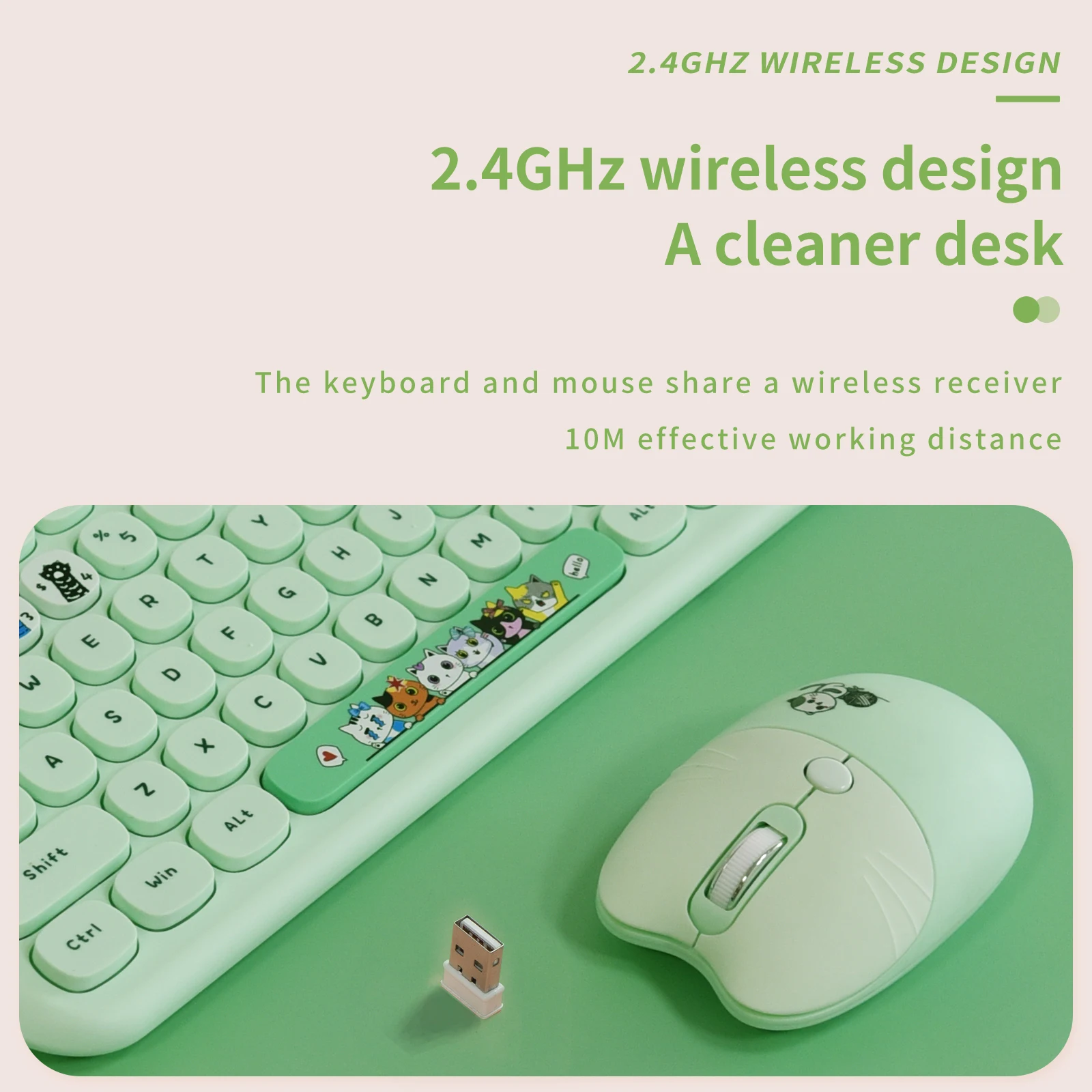 Plug and play, 33 feet (approximately 10.7 meters) working range, 2-in-1 nano receiver, no need to install additional software, no delays or dropped wires, make your desktop surface more neat and tidy, keyboard Or the mouse can be used alone, just plug in a USB receiver and use your wireless keyboard and mouse combo!