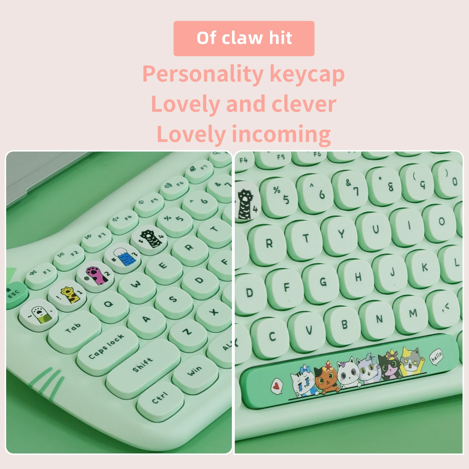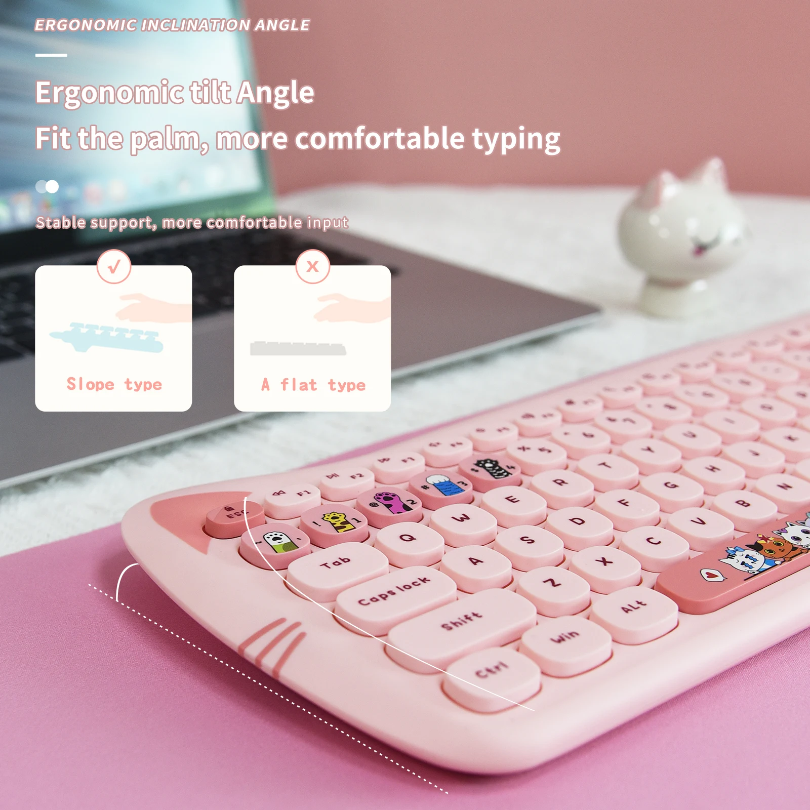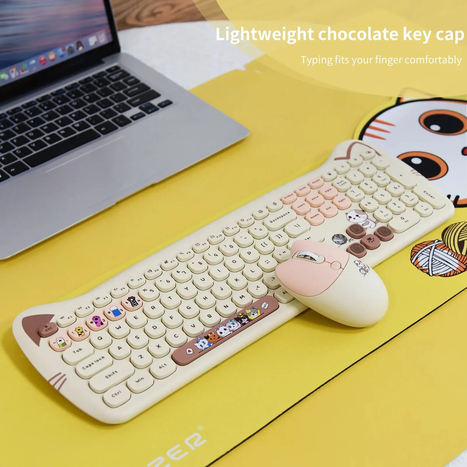 Cute cat keyboard design, milk chocolate keys, skin-friendly, comfortable and decompressing, experience different typing fun