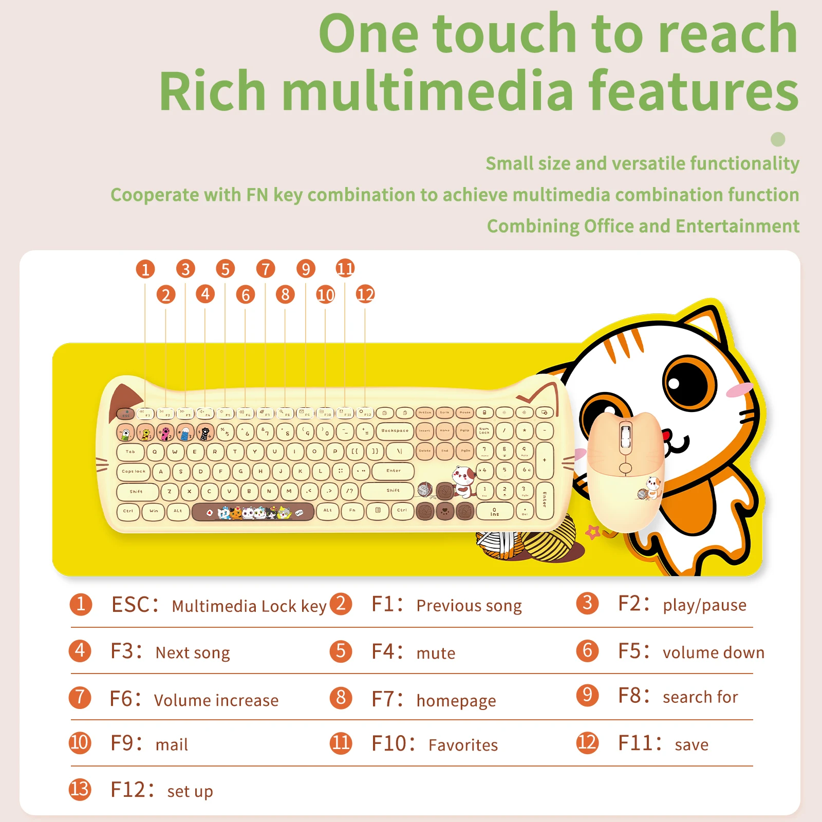 【Fun work】Cute cat keyboard design, milk chocolate keys, skin-friendly, comfortable and decompressing, experience different typing fun, let your work in a relaxed and free environment