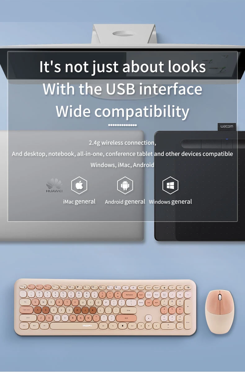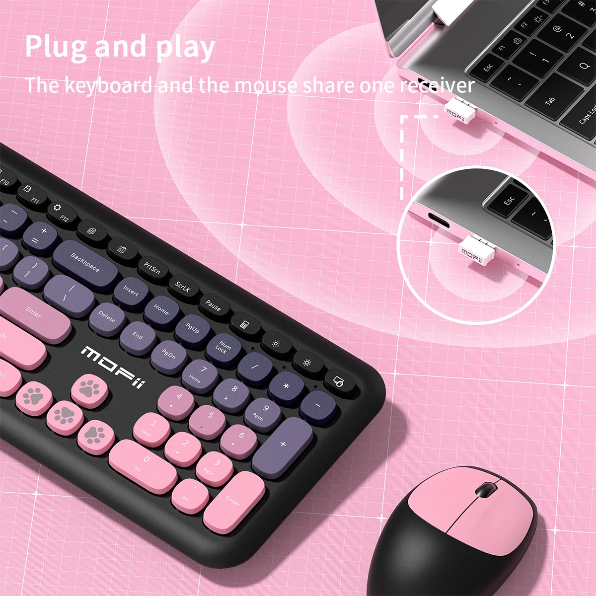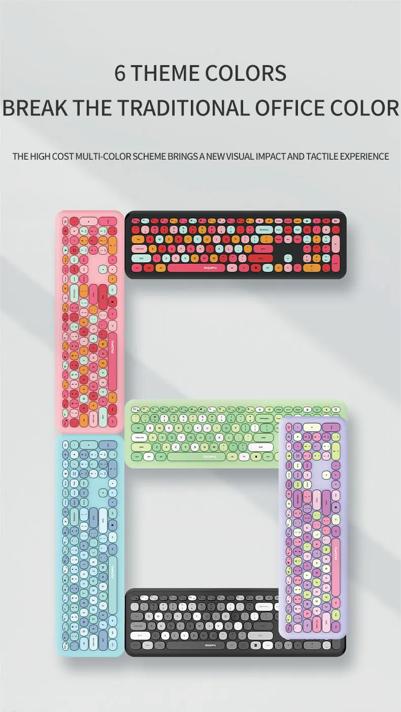 MOFii Wireless Connection Mixed Color Keycaps Thin Ergonomic 666 Wireless Keyboard and Mouse Set