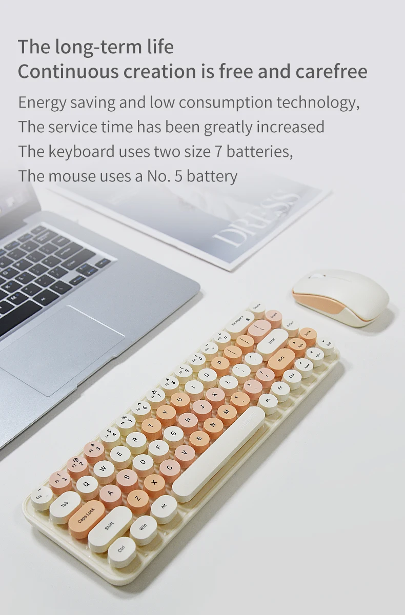 MOFII Wireless Keyboard and Mouse, Cute Colorful 68 Round Keycap Compact Keyboard for Computer, Computer, Desktop, Laptop