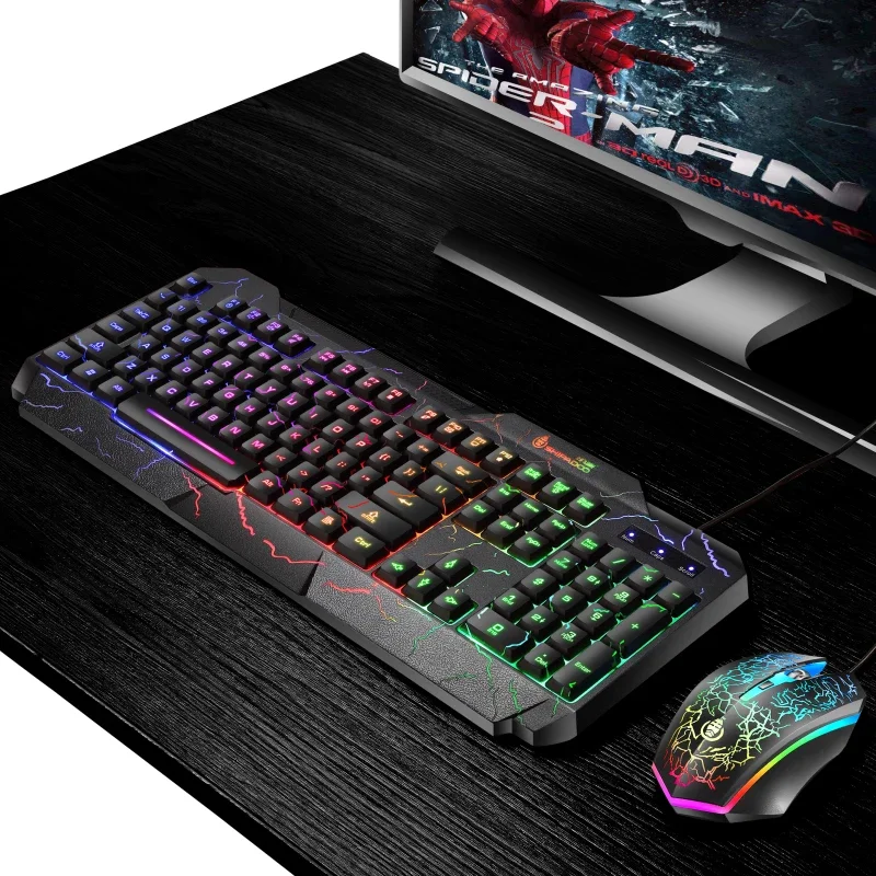 – Gaming Keyboard Mouse Combo: Cracked keyboard and mouse provide gamer an unique visual performance and dazzling , with RGB breathing backlight, 800/200/1600 3 level DPI adjustment.