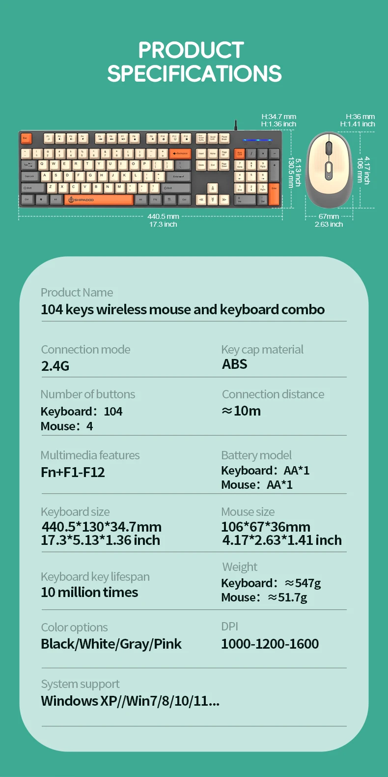 Be the first to review “Shipadoo Wireless Keyboard and Mouse Combo Set Gaming Wireless Laptop Desktop Computer Office Accessories Free Wireless Mouse”