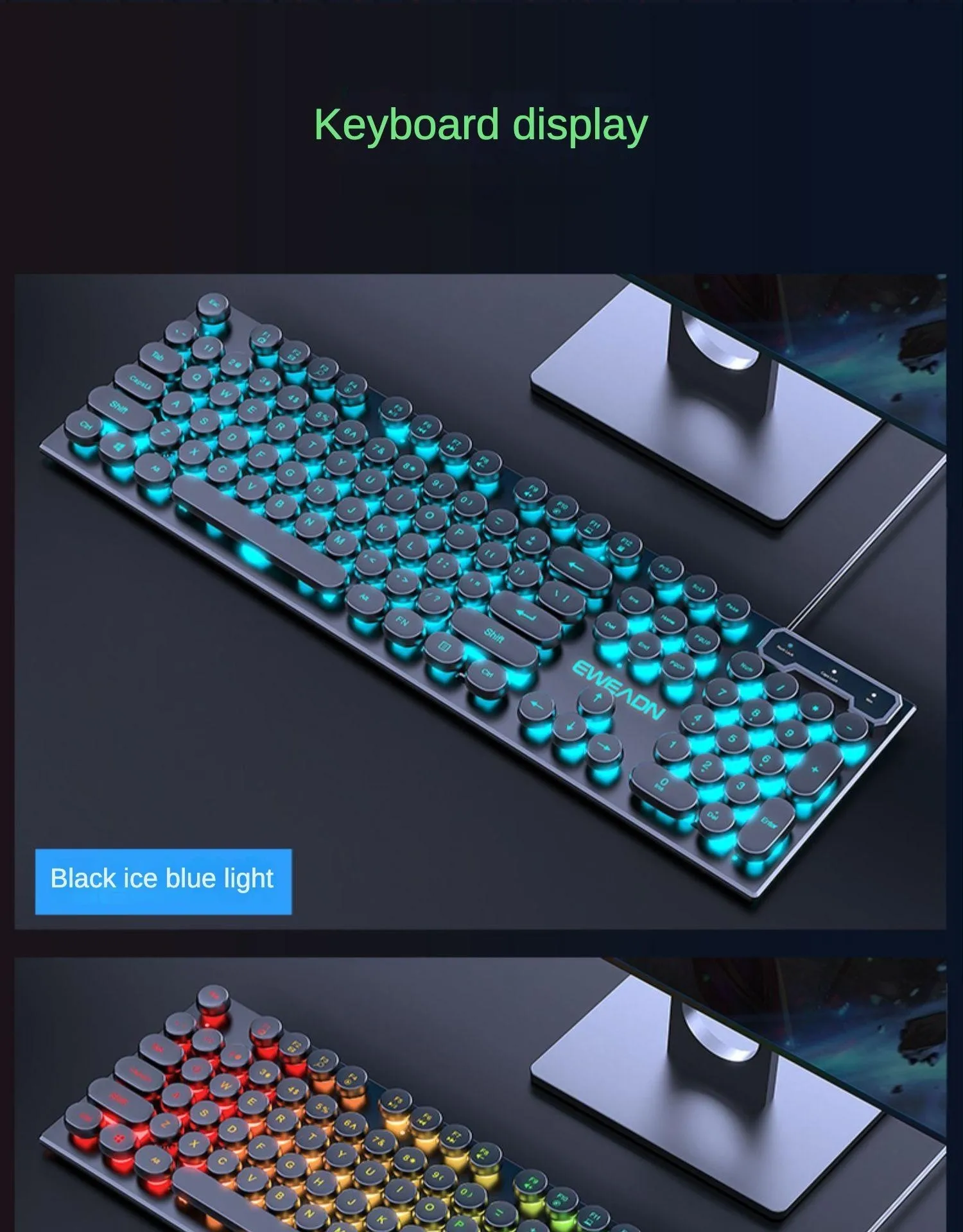 (2)Retro round keycap design, high-quality front panel with beautiful curve around. Response time of each click is only 2ms, an incredible durability of 50 million keystrokes per key.