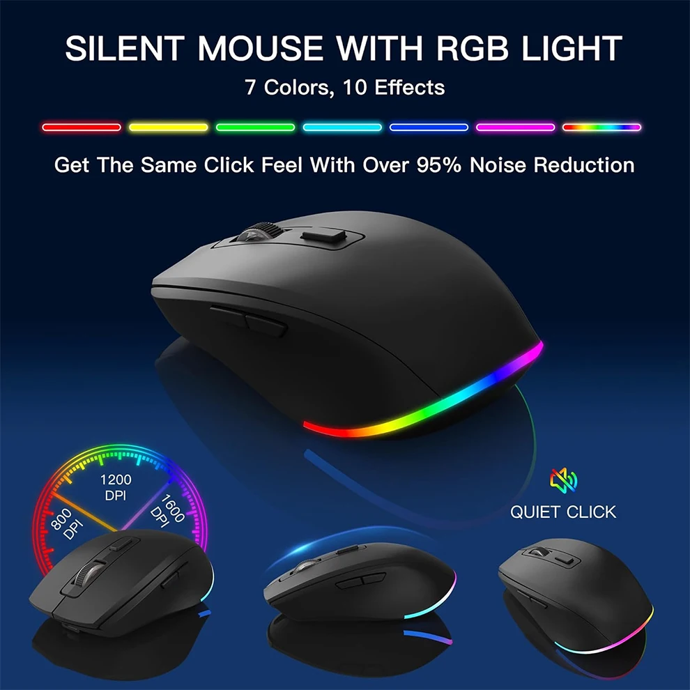 Cool Backlight: Wireless keyboard and mouse desiged with adjustable rainbow backlight, illuminated keys make it easier to type at night.