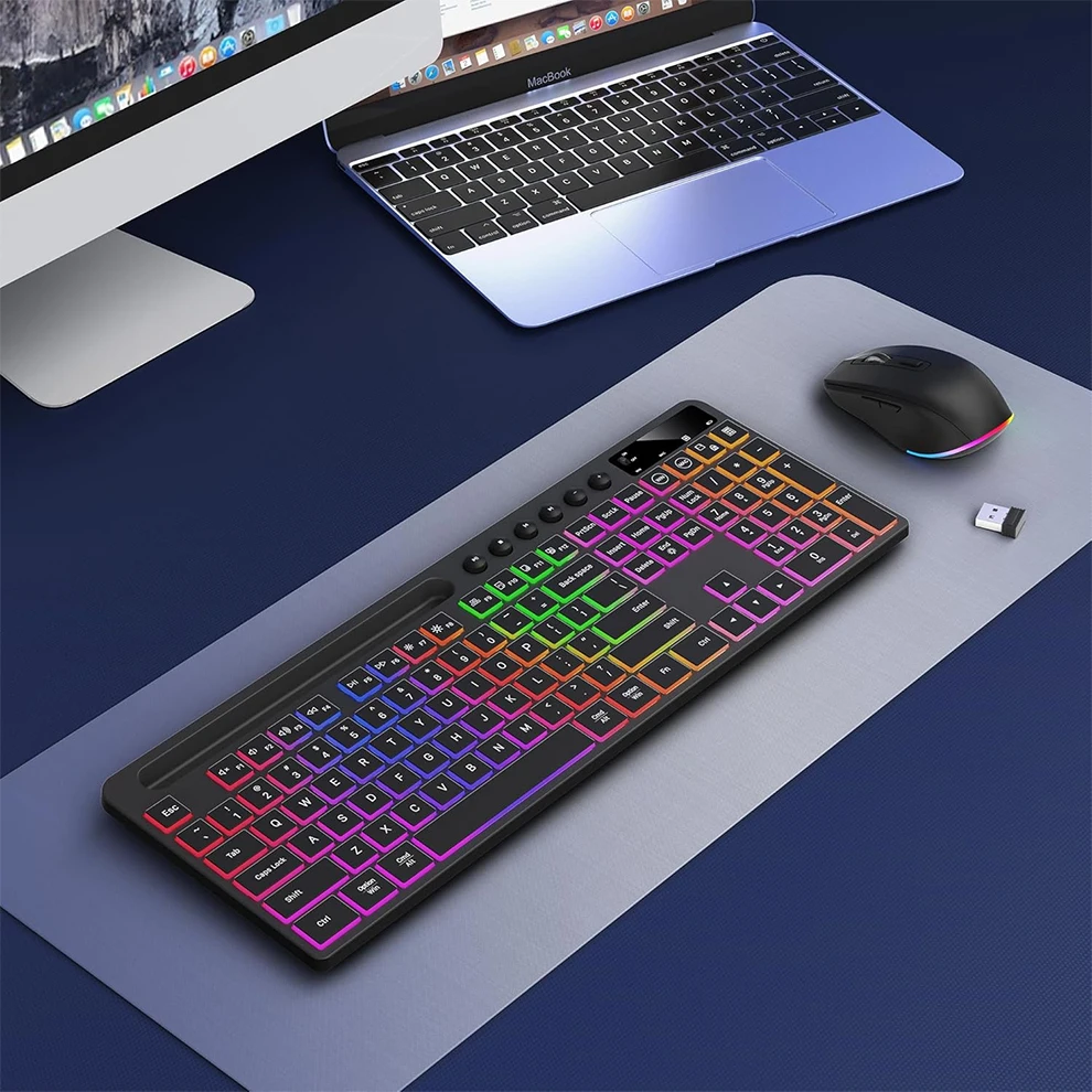 Wireless Keyboard and Mouse Combo with Backlit Full Size Ergonomic Keyboard with Phone Tablet Holder 2.4G Mouse for PC Laptop