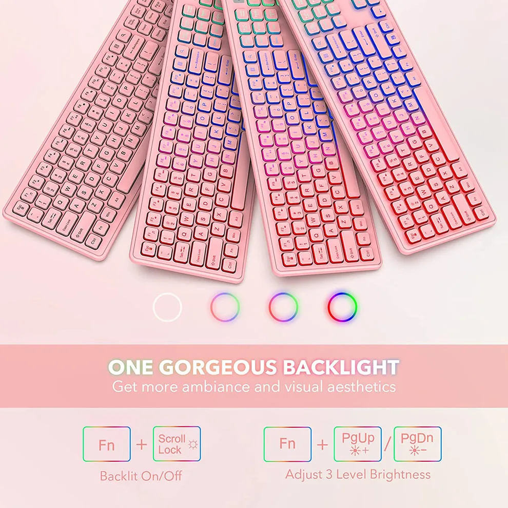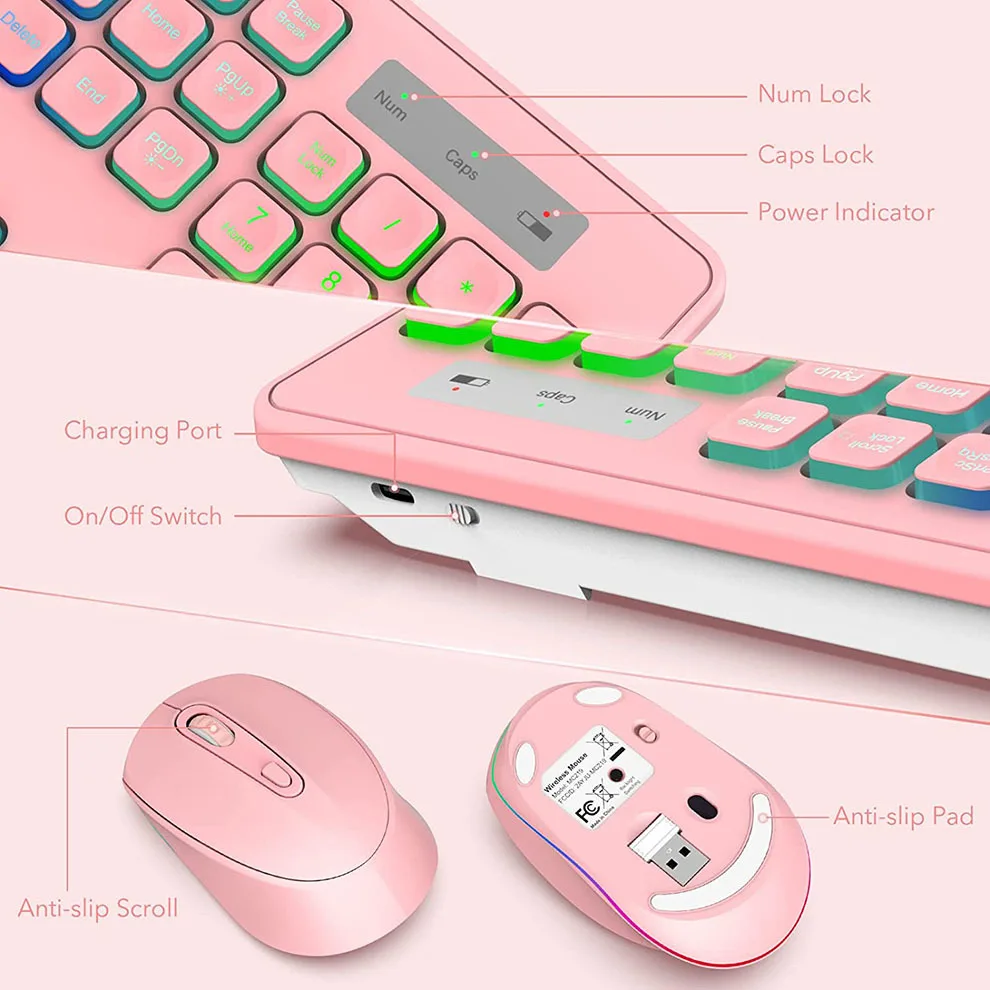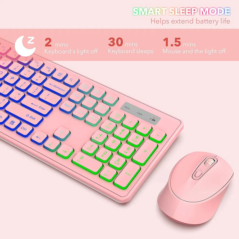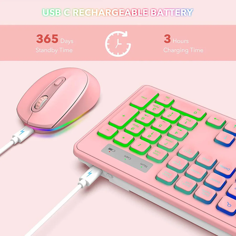 Wireless Keyboard and Mouse with RGB Backlit Rechargeable Full Size Wireless Keyboard Mouse Combo for Laptop PC Chromebook