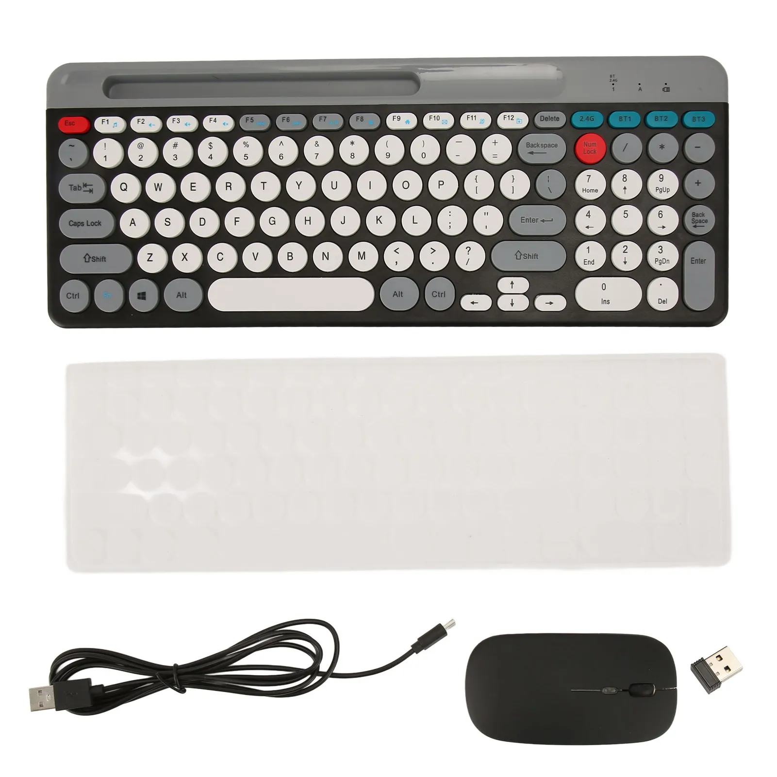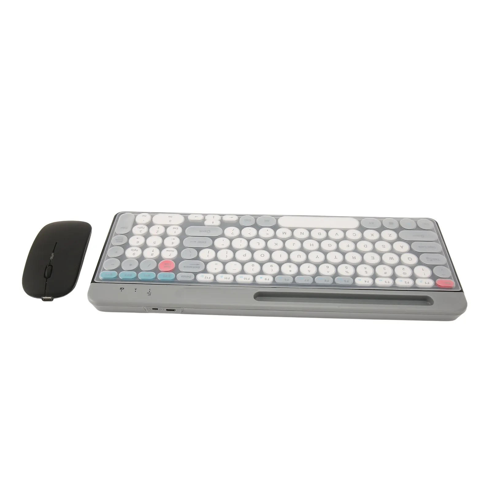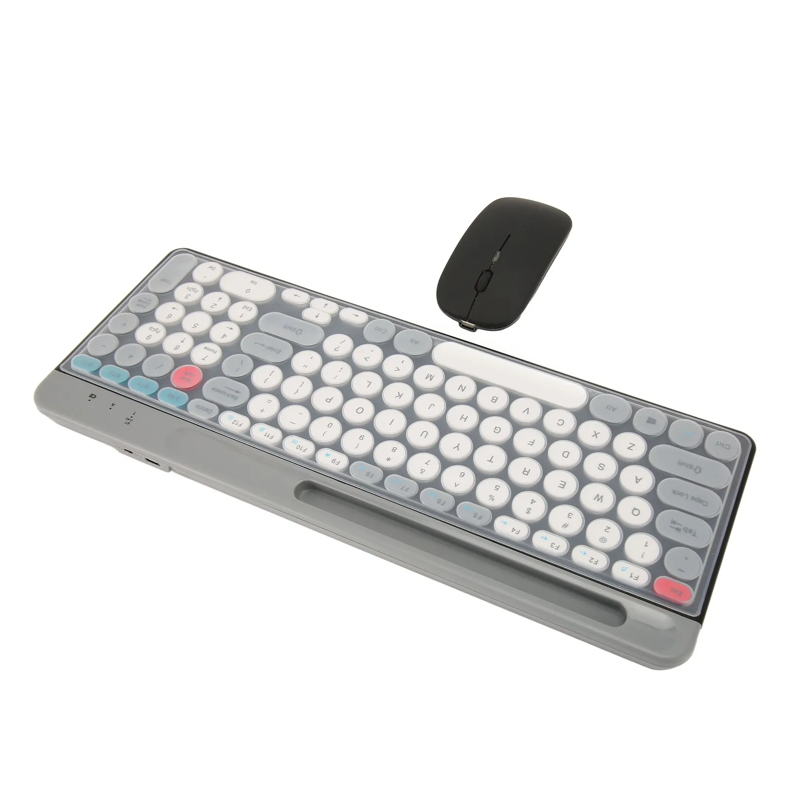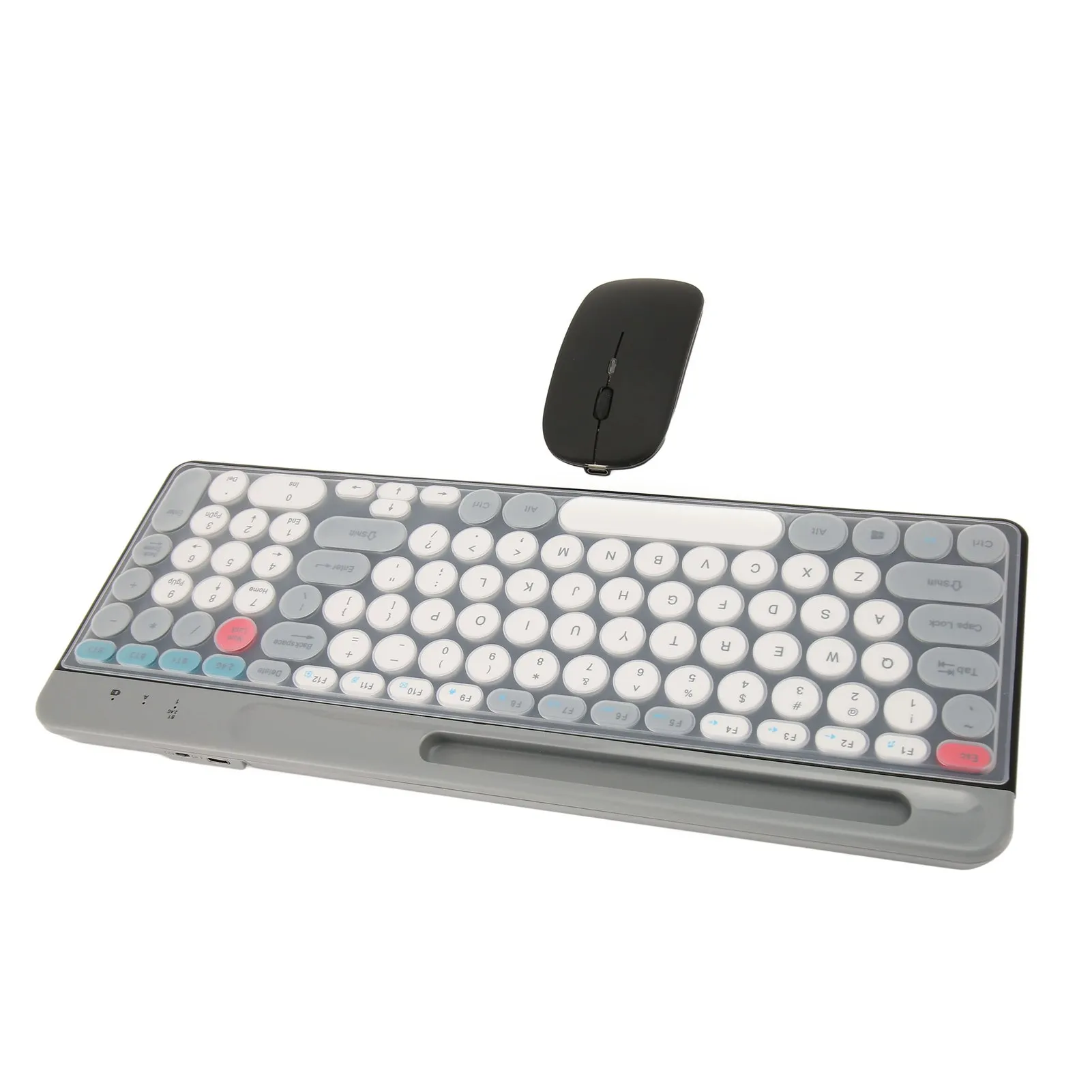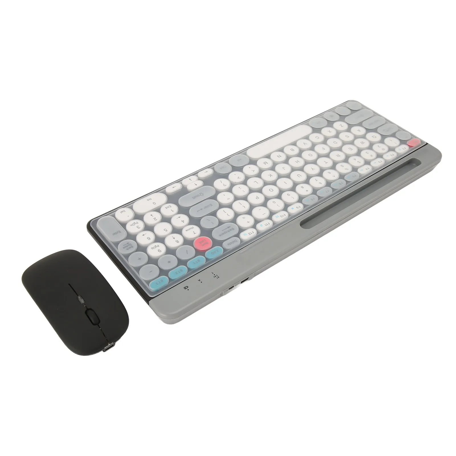 Wireless Keyboard Mouse Set Rechargeable Retro Style Round Keycaps 2.4G Wireless Bluetooth Dual Mode Keyboard Mouse Set