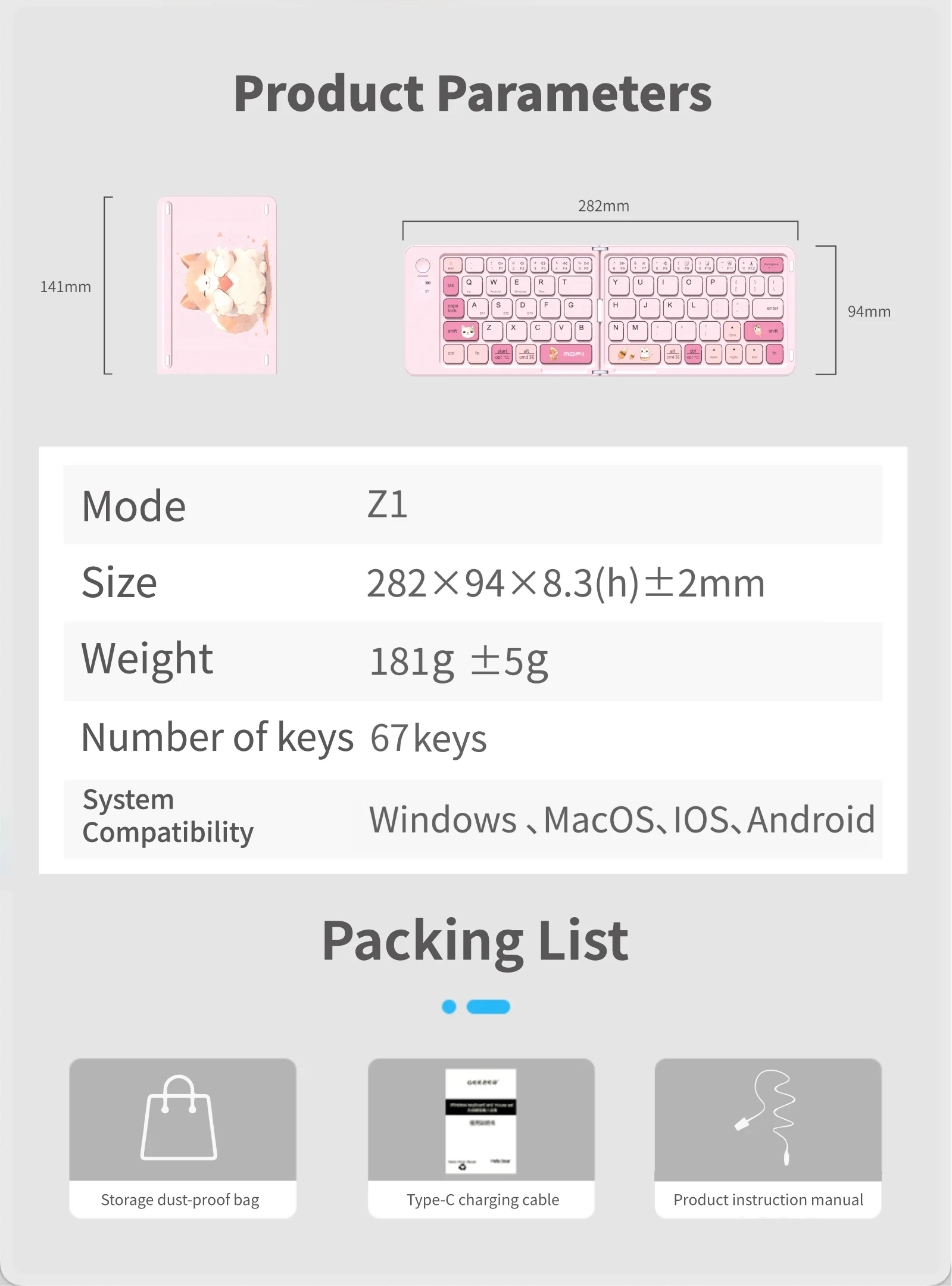 Z1 10-Inch Bluetooth Wireless Mini Mute Keyboard With Square Keys, Compatible With Three Systems For Phones And IPads
